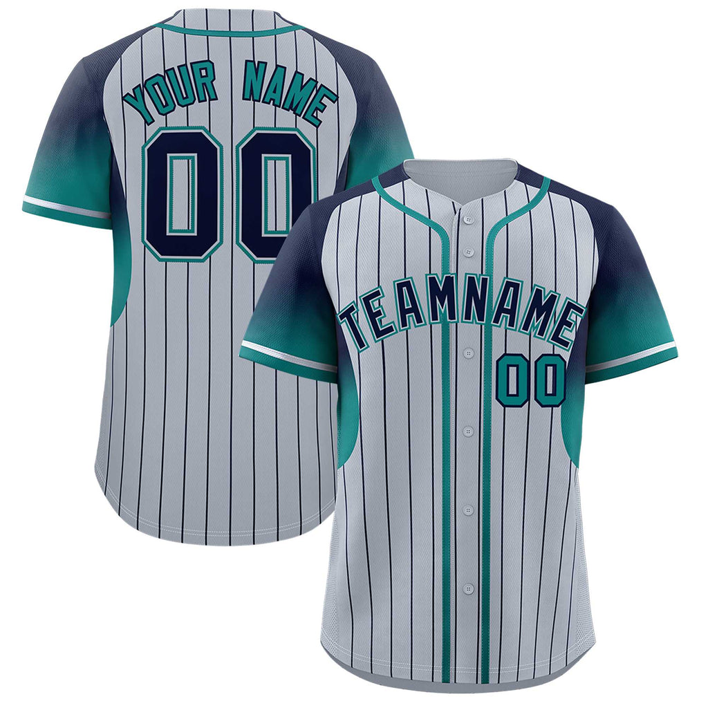 Custom Silver Navy Stripe Fashion Sleeves Gradient Authentic Baseball Jersey