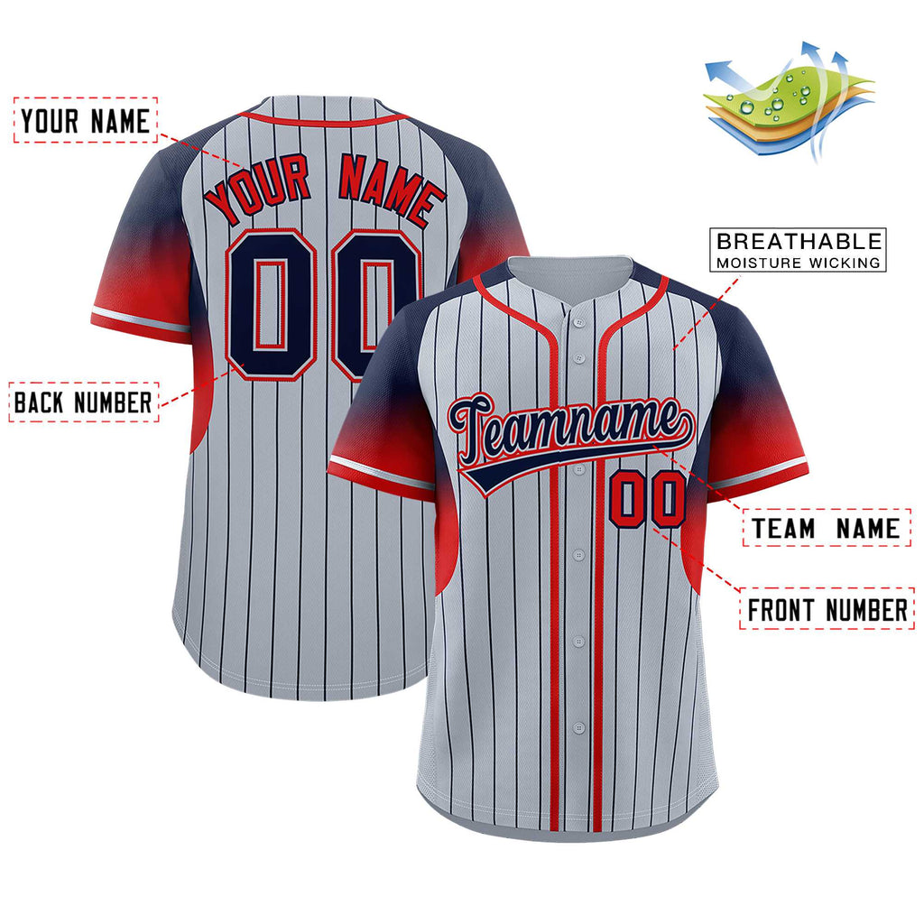 Custom Silver Navy Stripe Fashion Sleeves Gradient Authentic Baseball Jersey