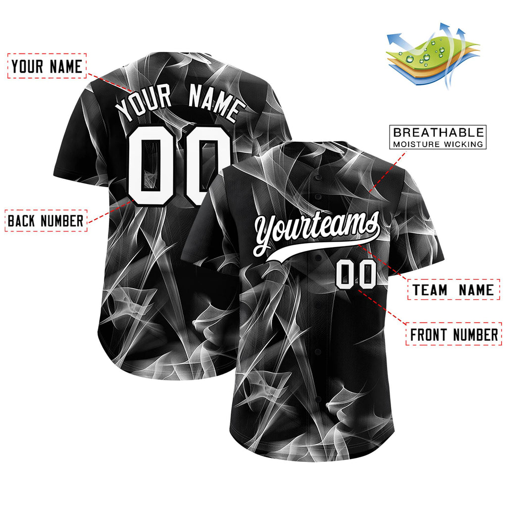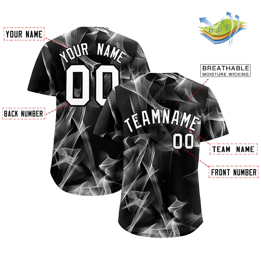 Custom Black Fumes Graffiti Pattern Authentic Baseball Jersey