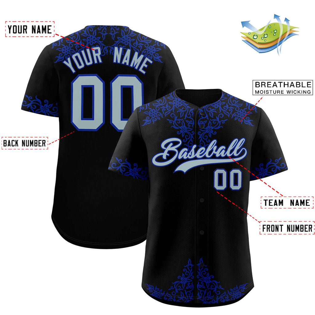 Custom Black Royal Baroque Style Personalized Baseball Jersey