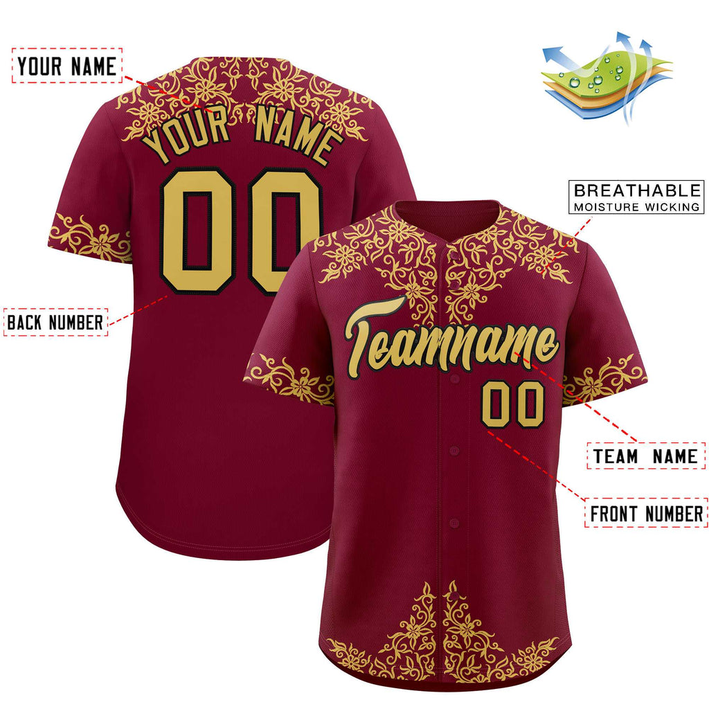 Custom Crimson Old Gold Baroque Style Personalized Baseball Jersey
