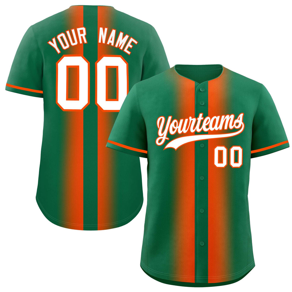 Custom Kelly Green Orange Lapel Gradient Fashion Authentic Baseball Jersey