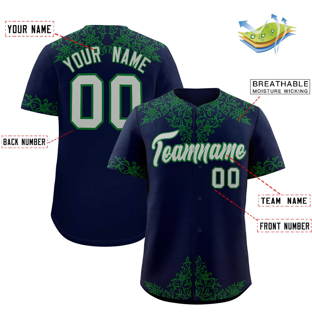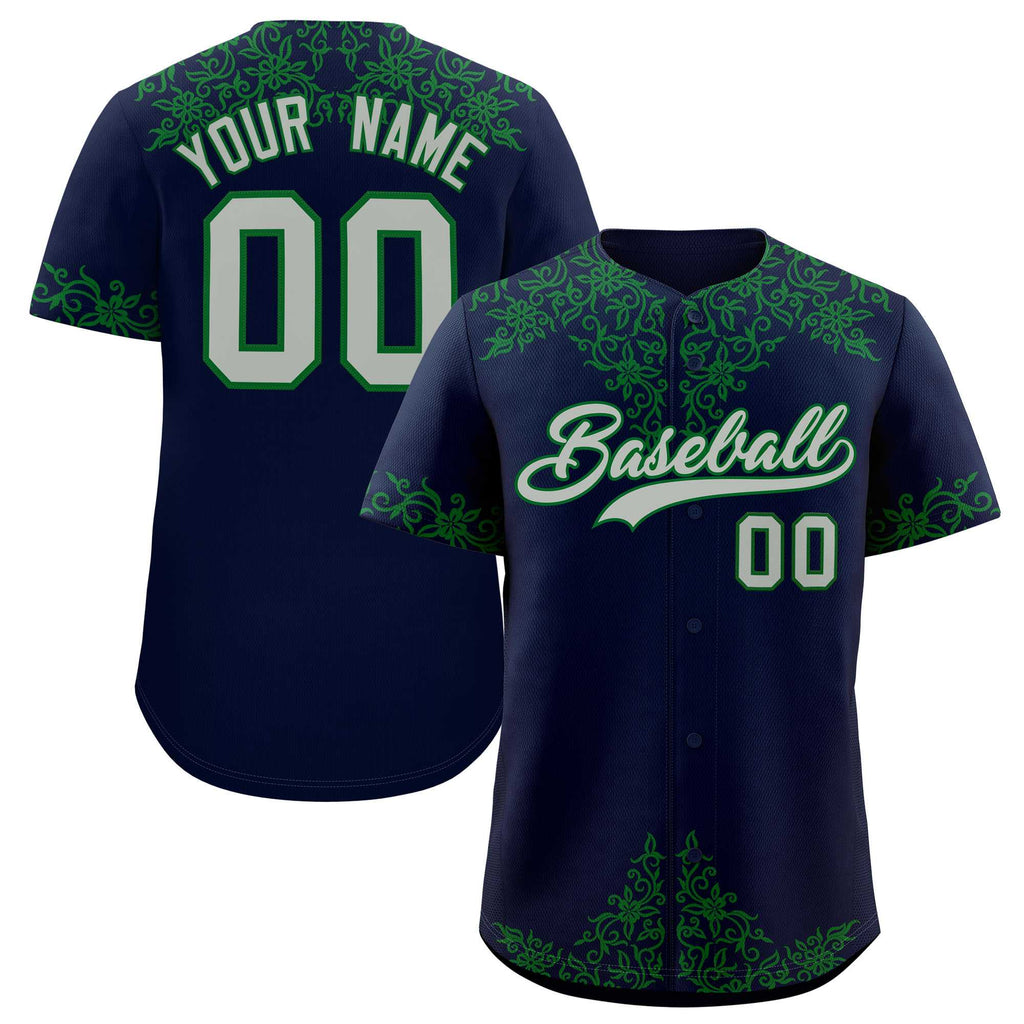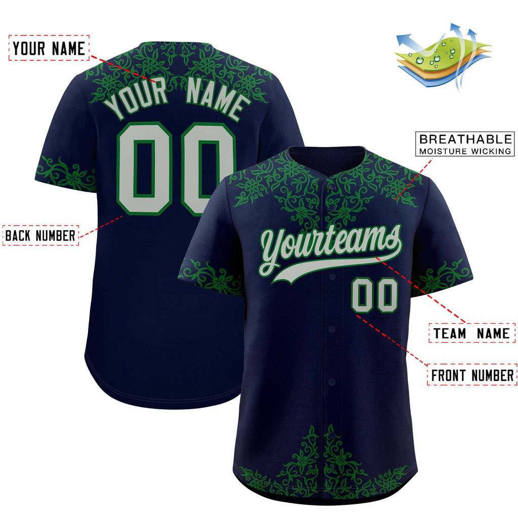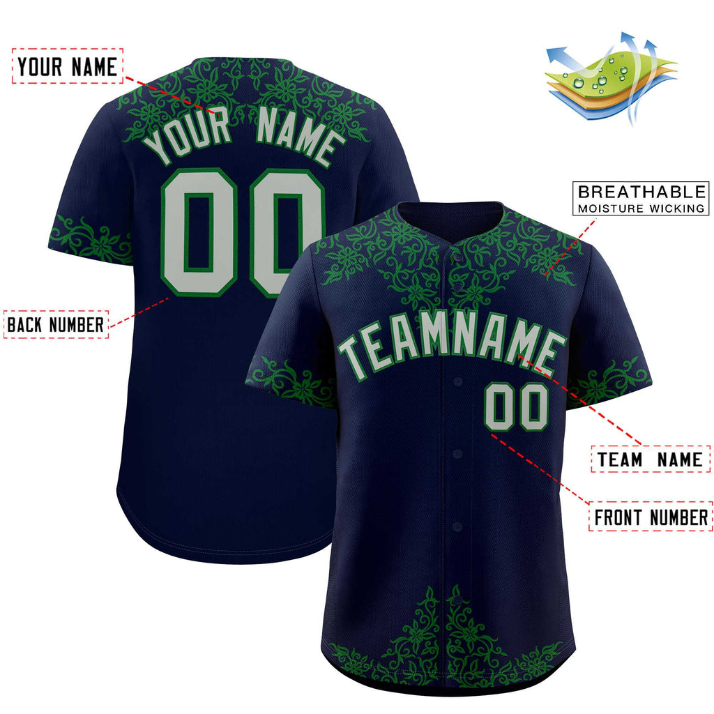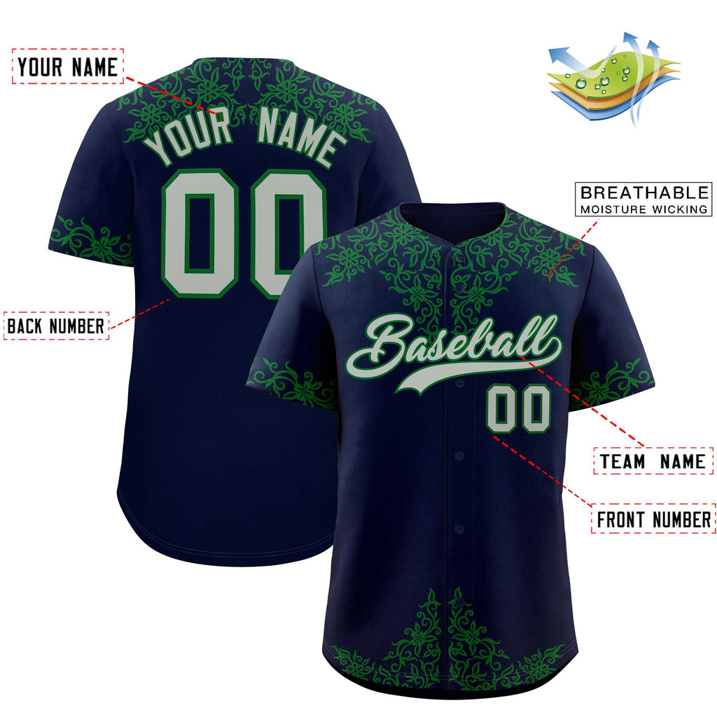 Custom Navy Kelly Green Baroque Style Personalized Baseball Jersey