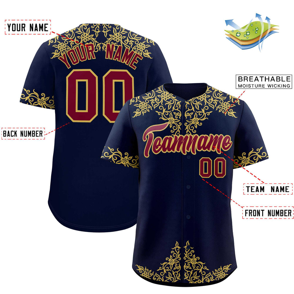 Custom Navy Old Gold Baroque Style Personalized Baseball Jersey