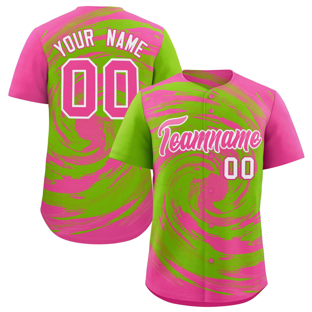 Custom Neon Green Pink Swirl Graffiti Pattern Authentic Baseball Jersey