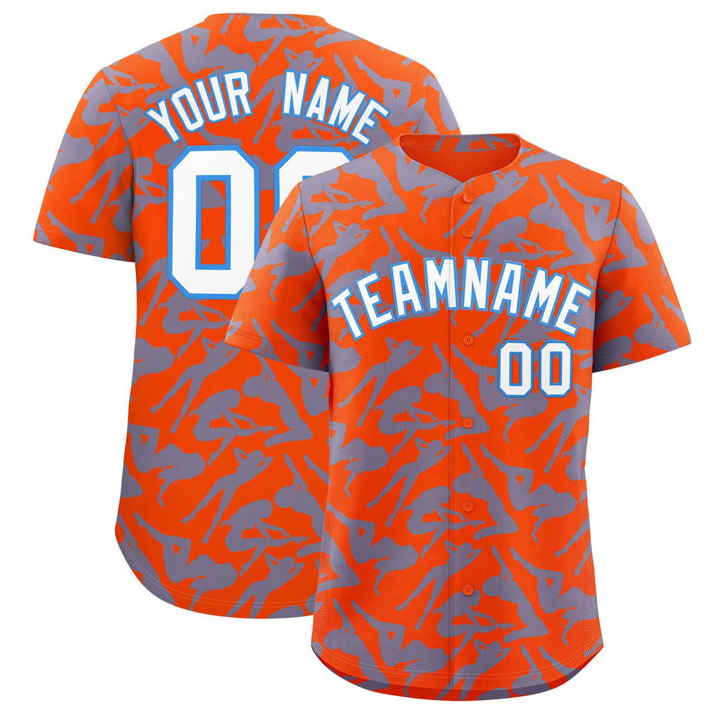 Custom Orange Light Blue Playboy Graffiti Pattern Authentic Baseball Jersey