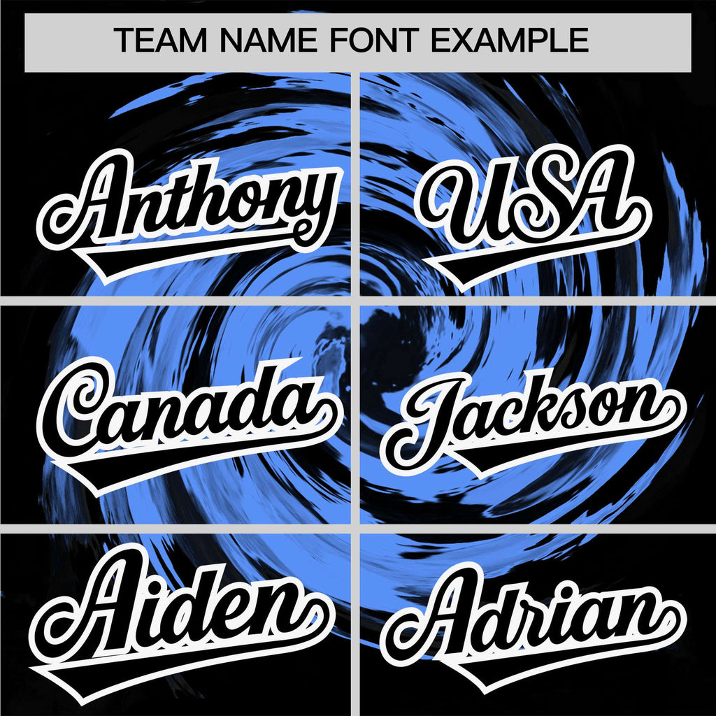Custom Powder Blue Black Swirl Graffiti Pattern Authentic Baseball Jersey