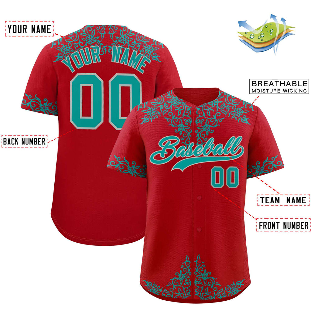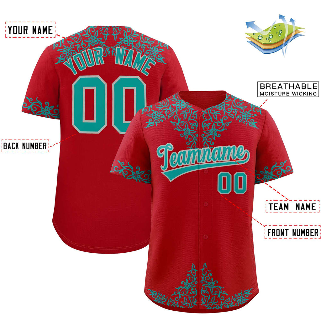 Custom Red Teal Baroque Style Personalized Baseball Jersey