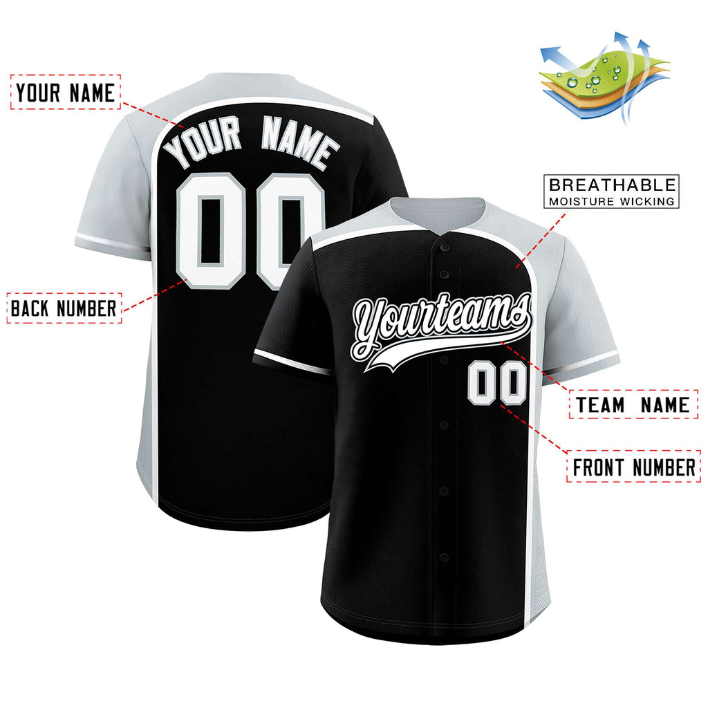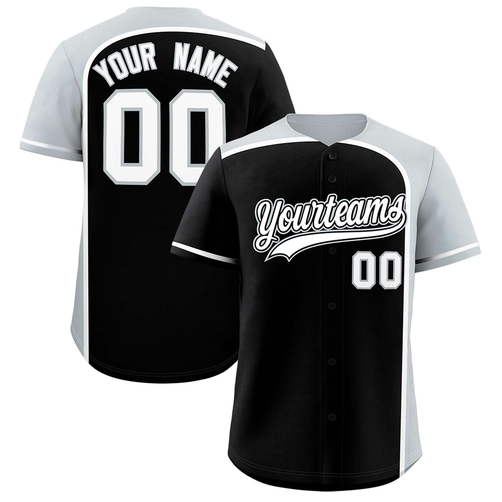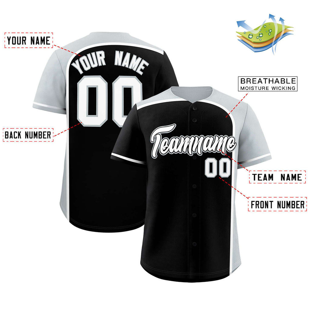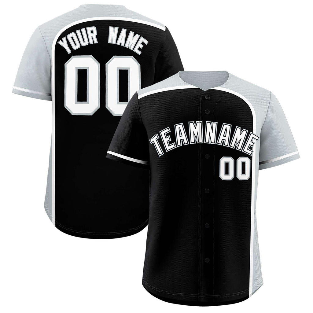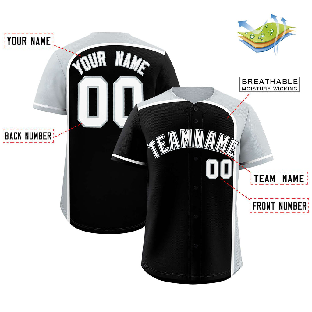 Custom Black Silver Personalized Color Block Authentic Baseball jersey