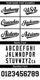 Customized information: Team Name:,Front Number,Your Name:,Back Number:.