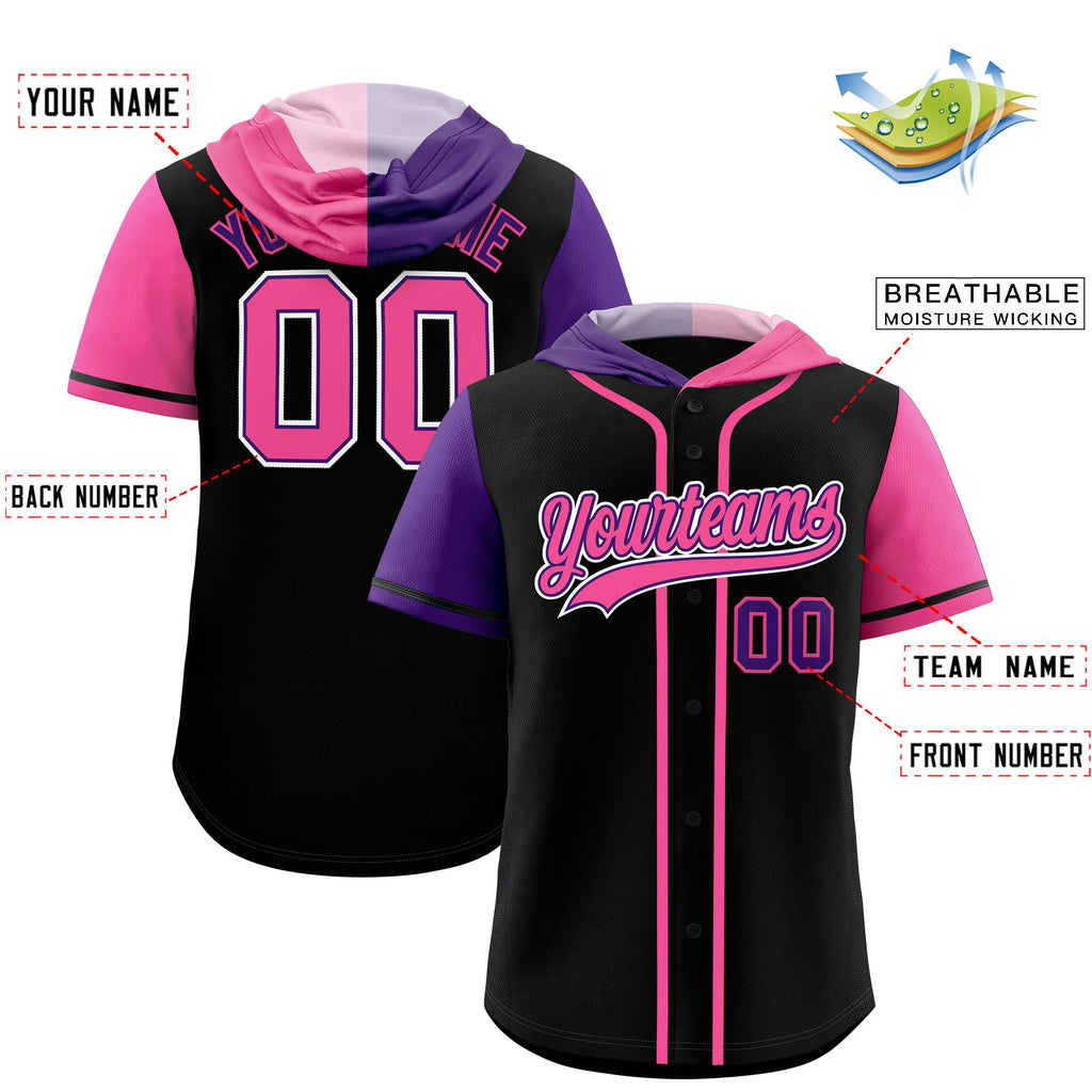 Custom Black Purple and Pink Split Fashion Raglan Sleeves Authentic Baseball Hoodie Jersey