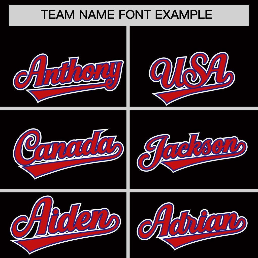 Custom Black Royal and Red Split Fashion Raglan Sleeves Authentic Baseball Hoodie Jersey