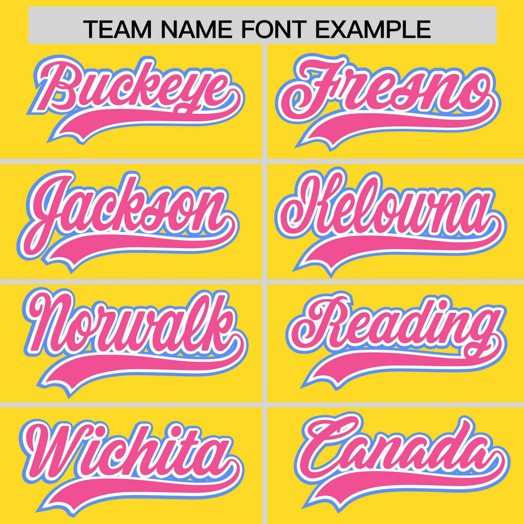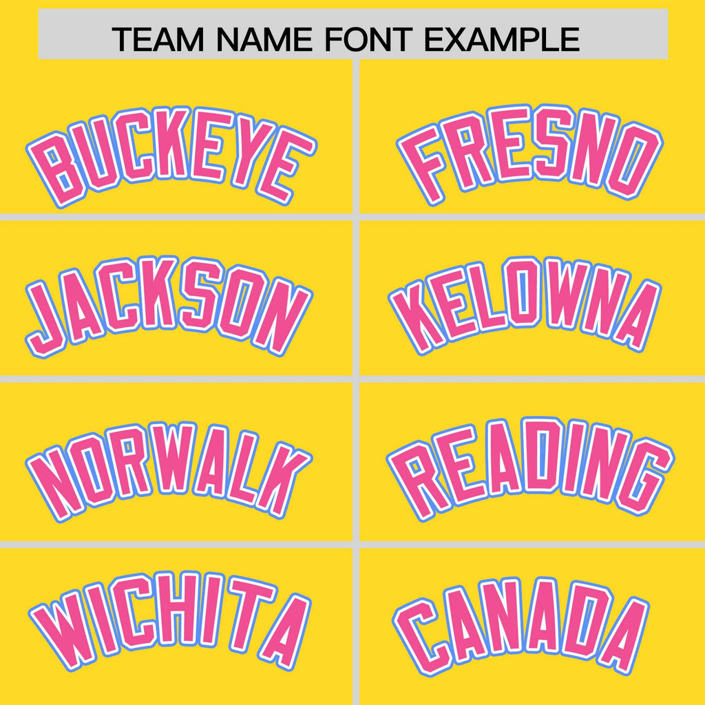 Custom Gold Powder Blue and Pink Split Fashion Raglan Sleeves Authentic Baseball Hoodie Jersey