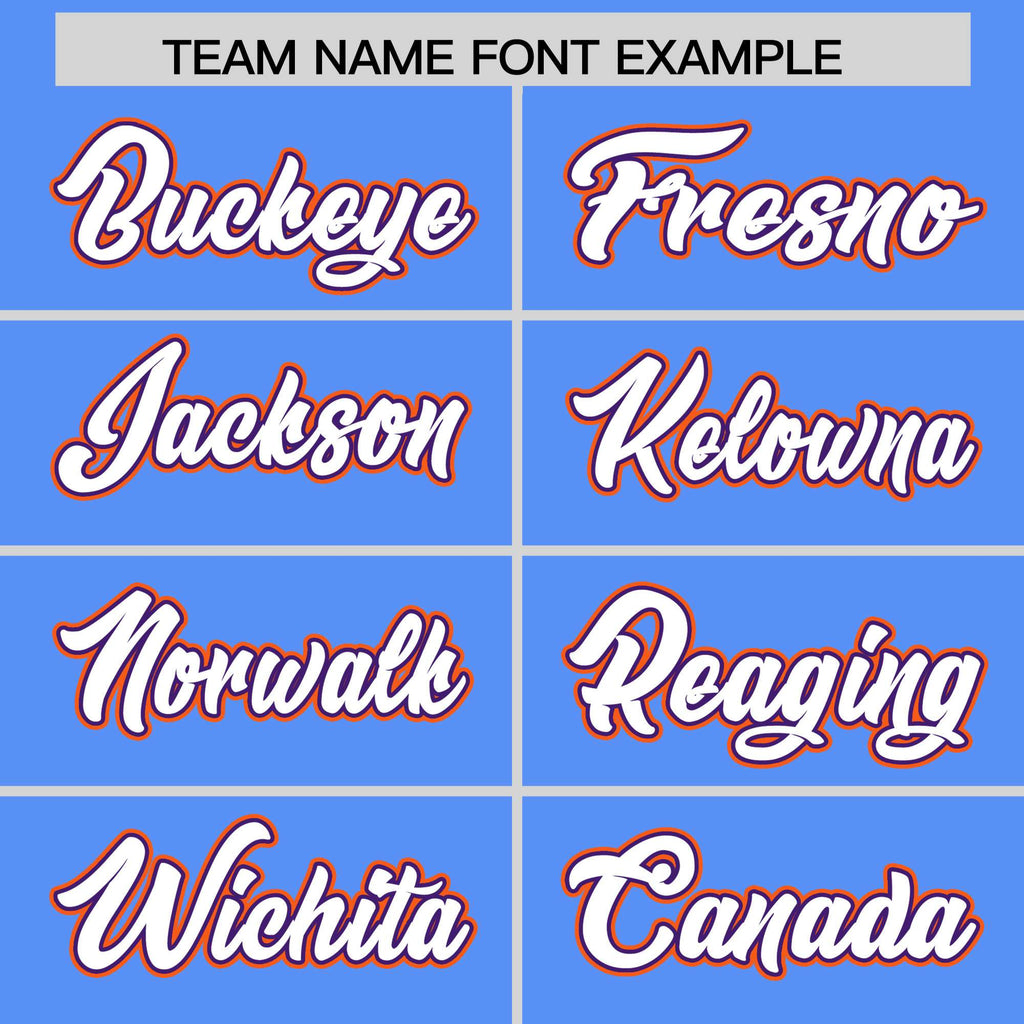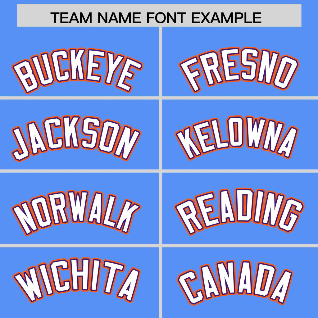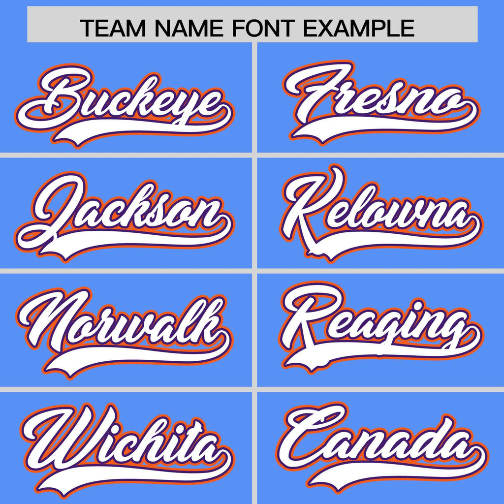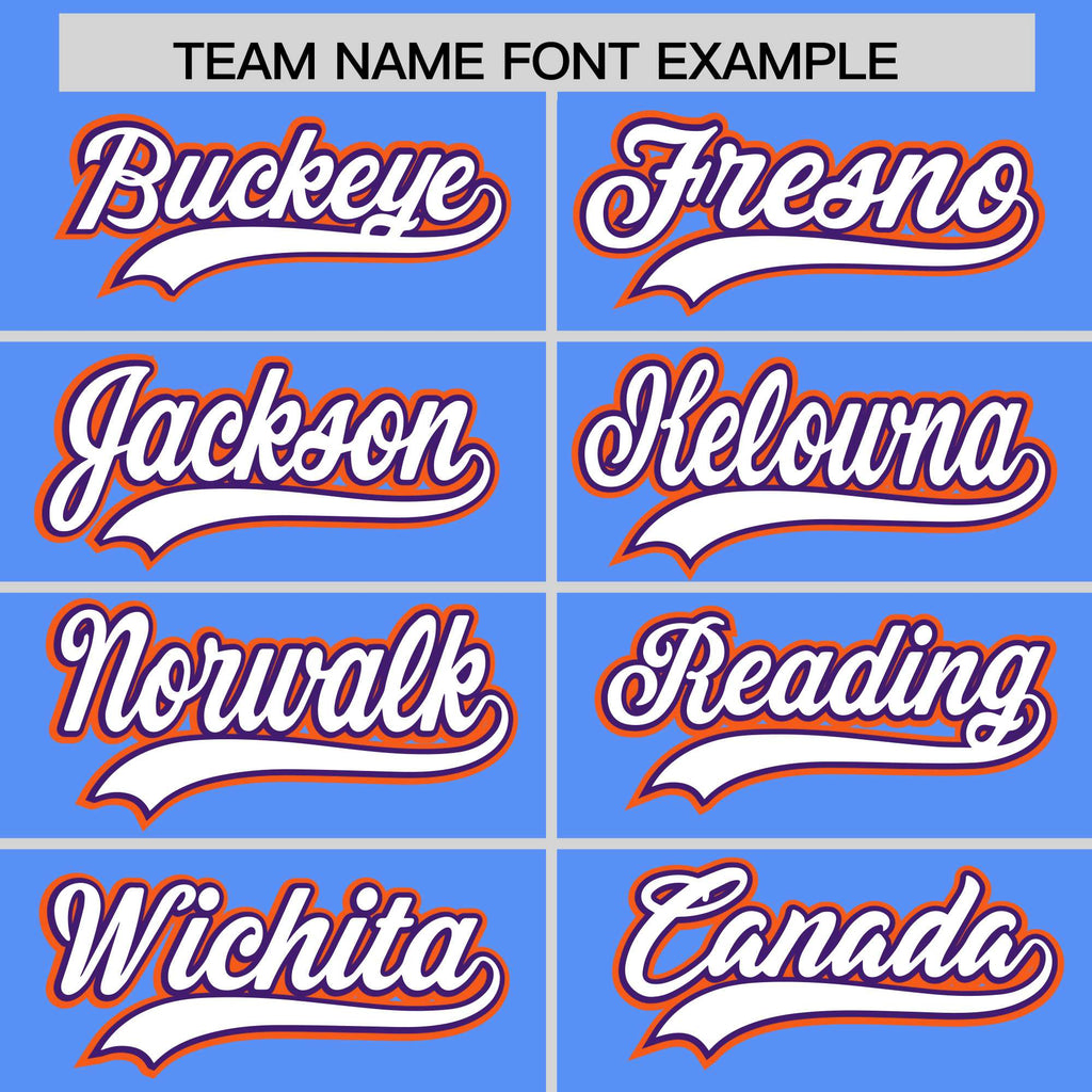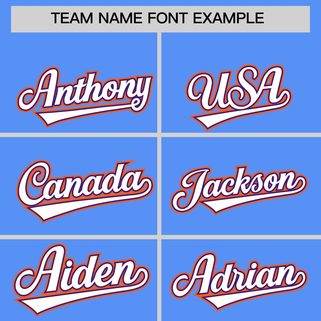 Custom Powder Blue Orange and Purple Split Fashion Raglan Sleeves Authentic Baseball Hoodie Jersey