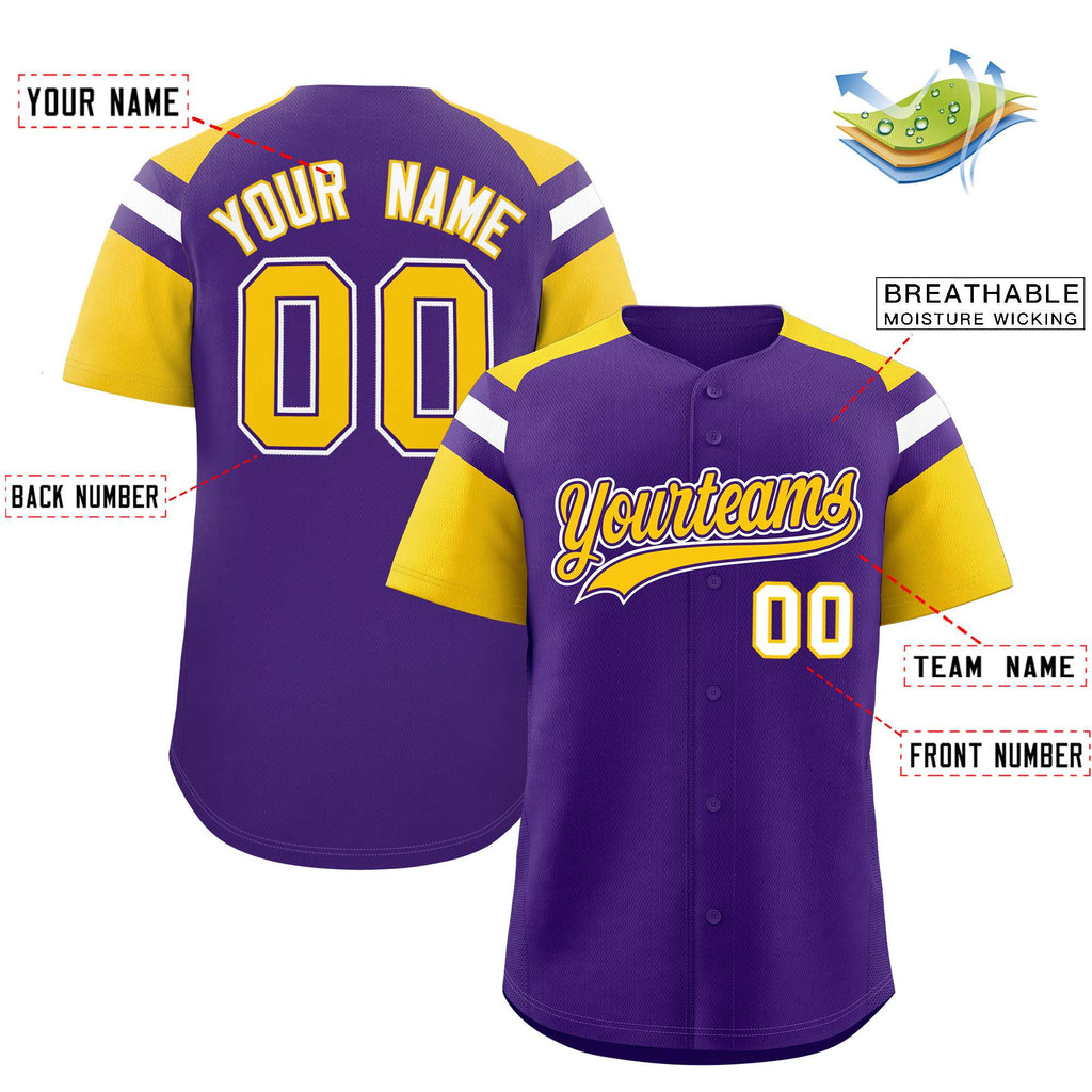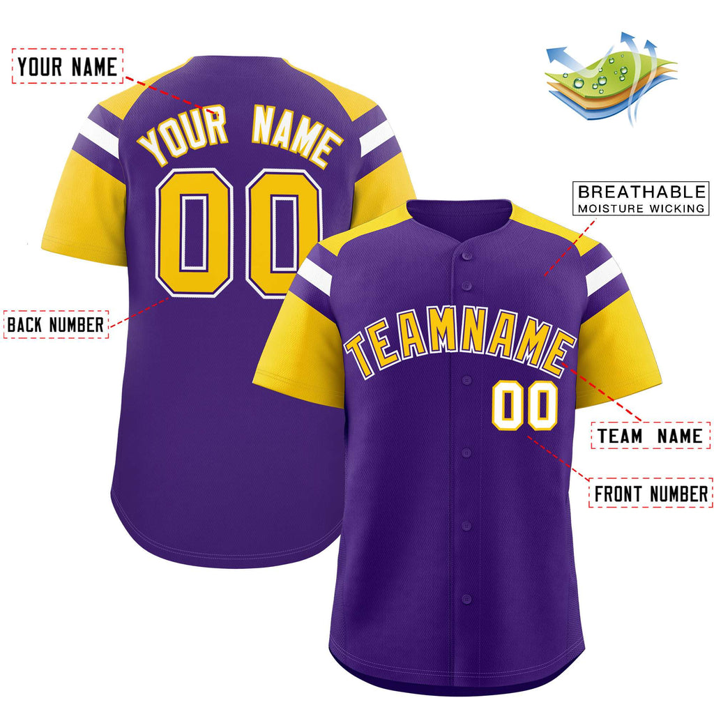 Custom Purple Gold Contrast Raglan Sleeves Authentic Baseball Jersey