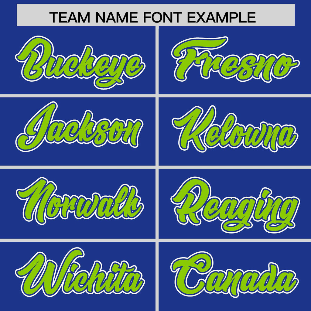 Custom Royal Neon Green Contrast Raglan Sleeves Authentic Baseball Jersey
