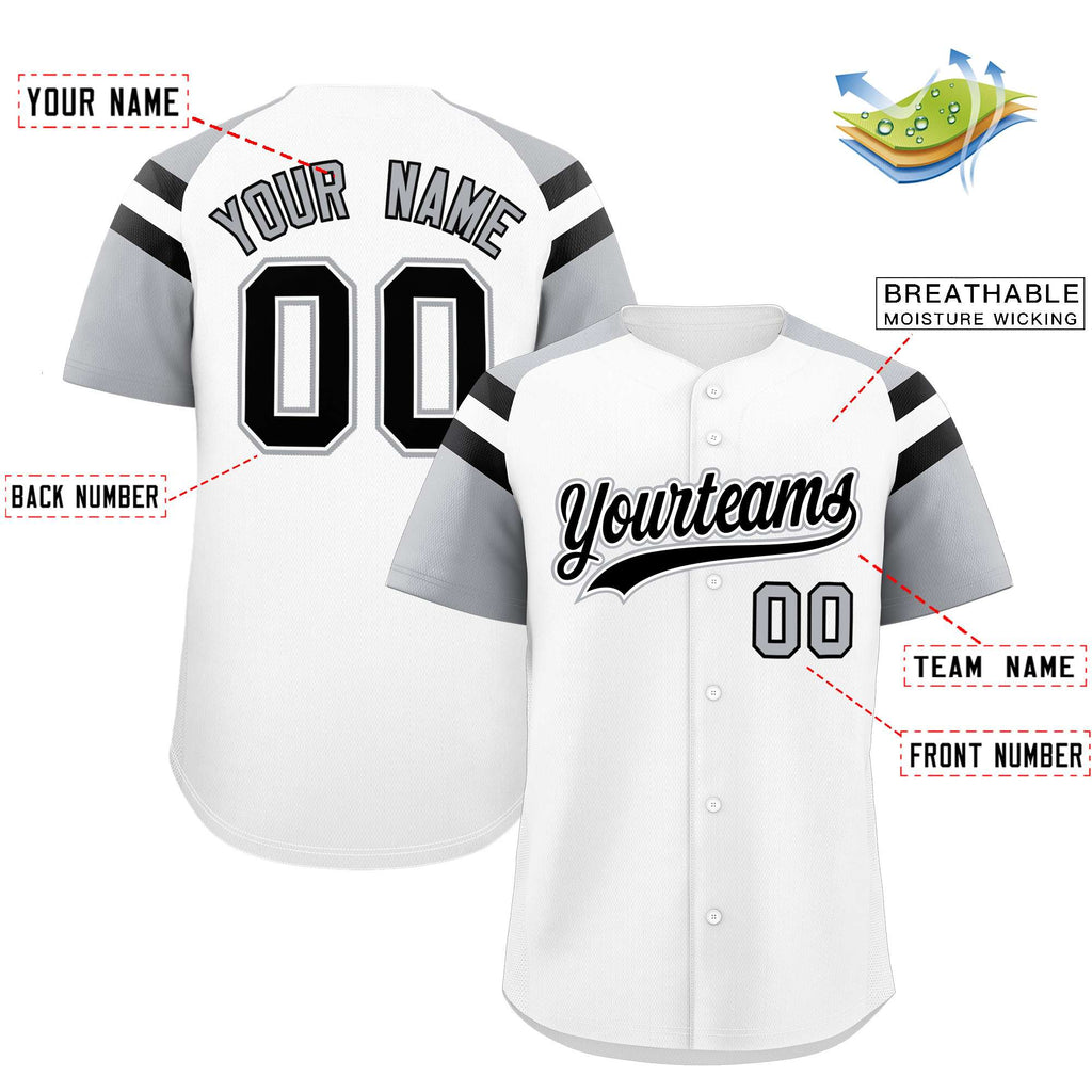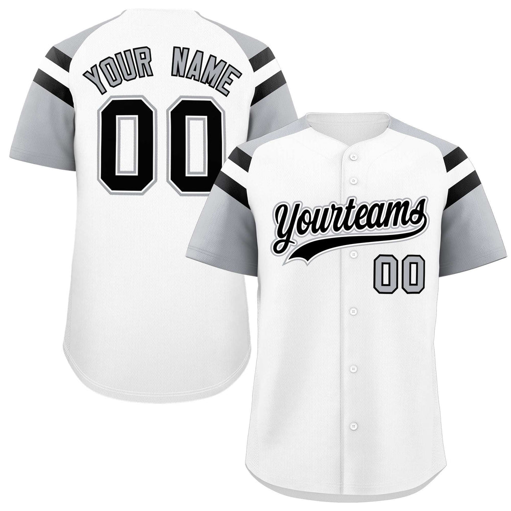 Custom White Silver Contrast Raglan Sleeves Authentic Baseball Jersey
