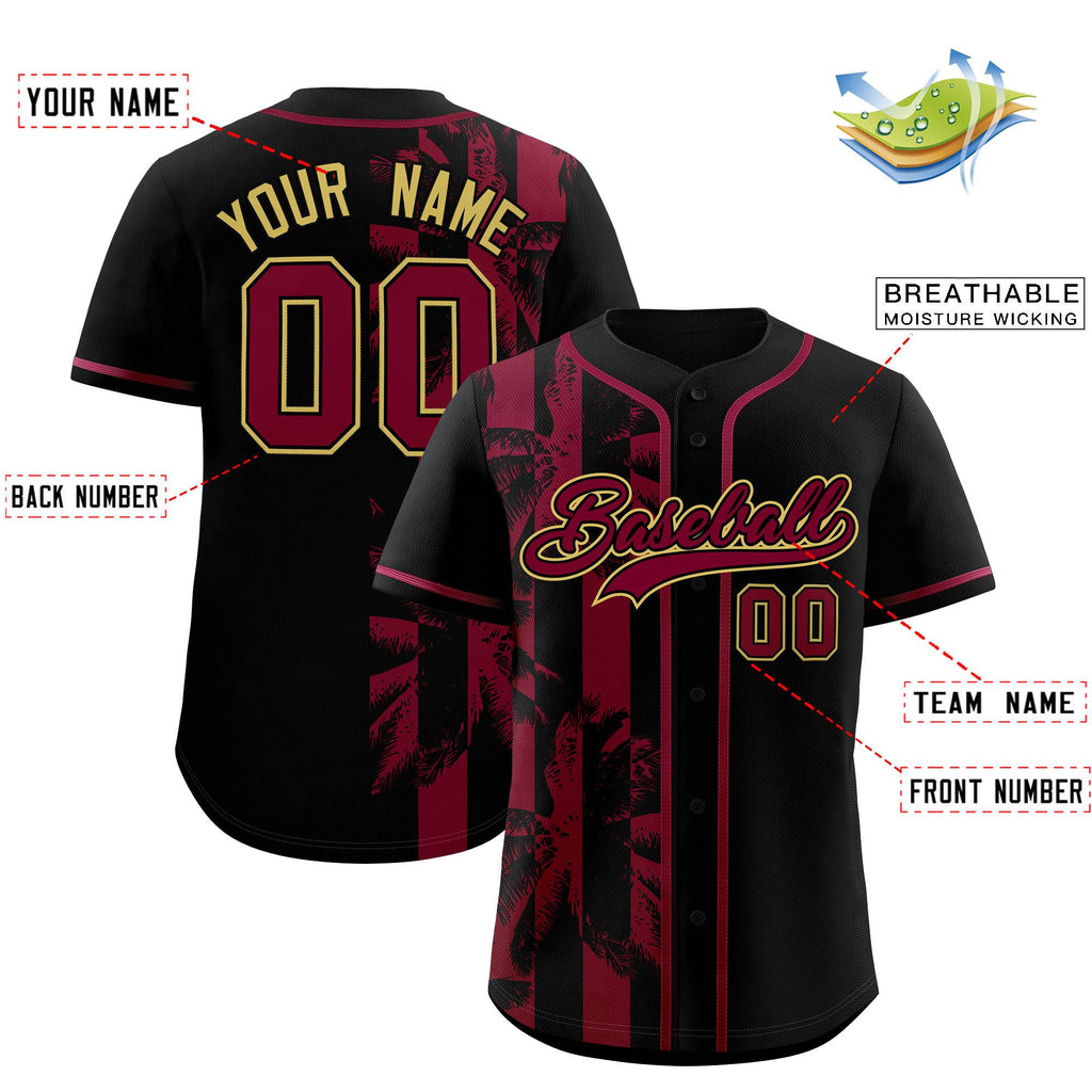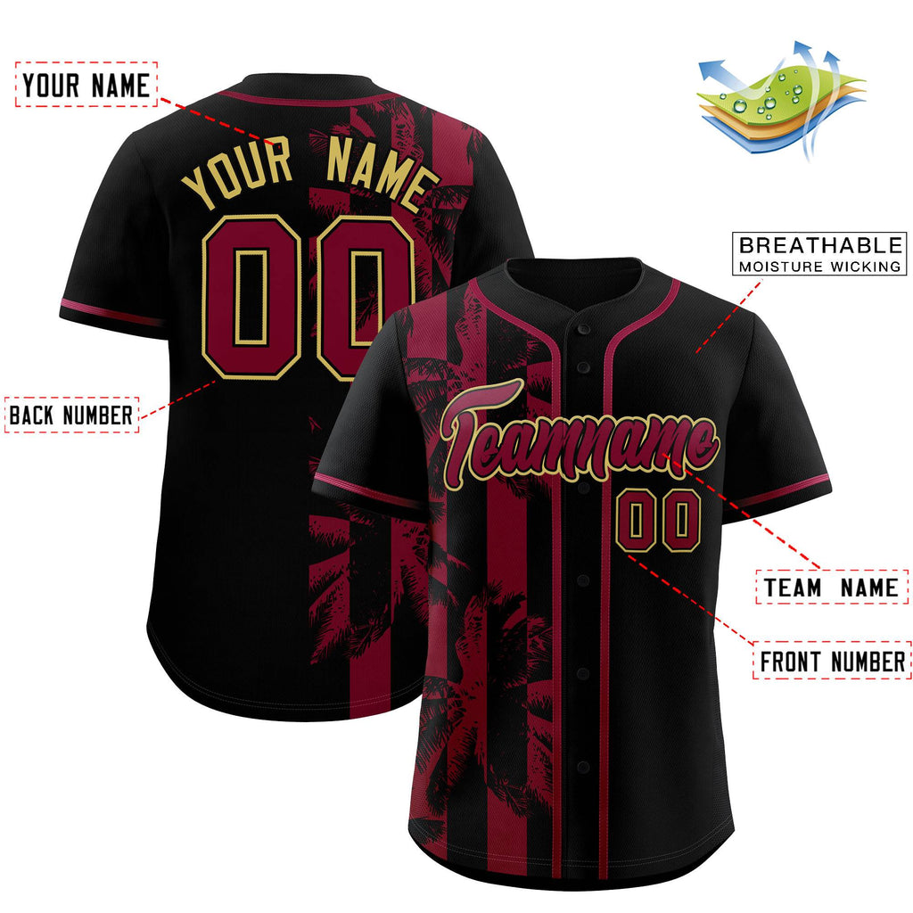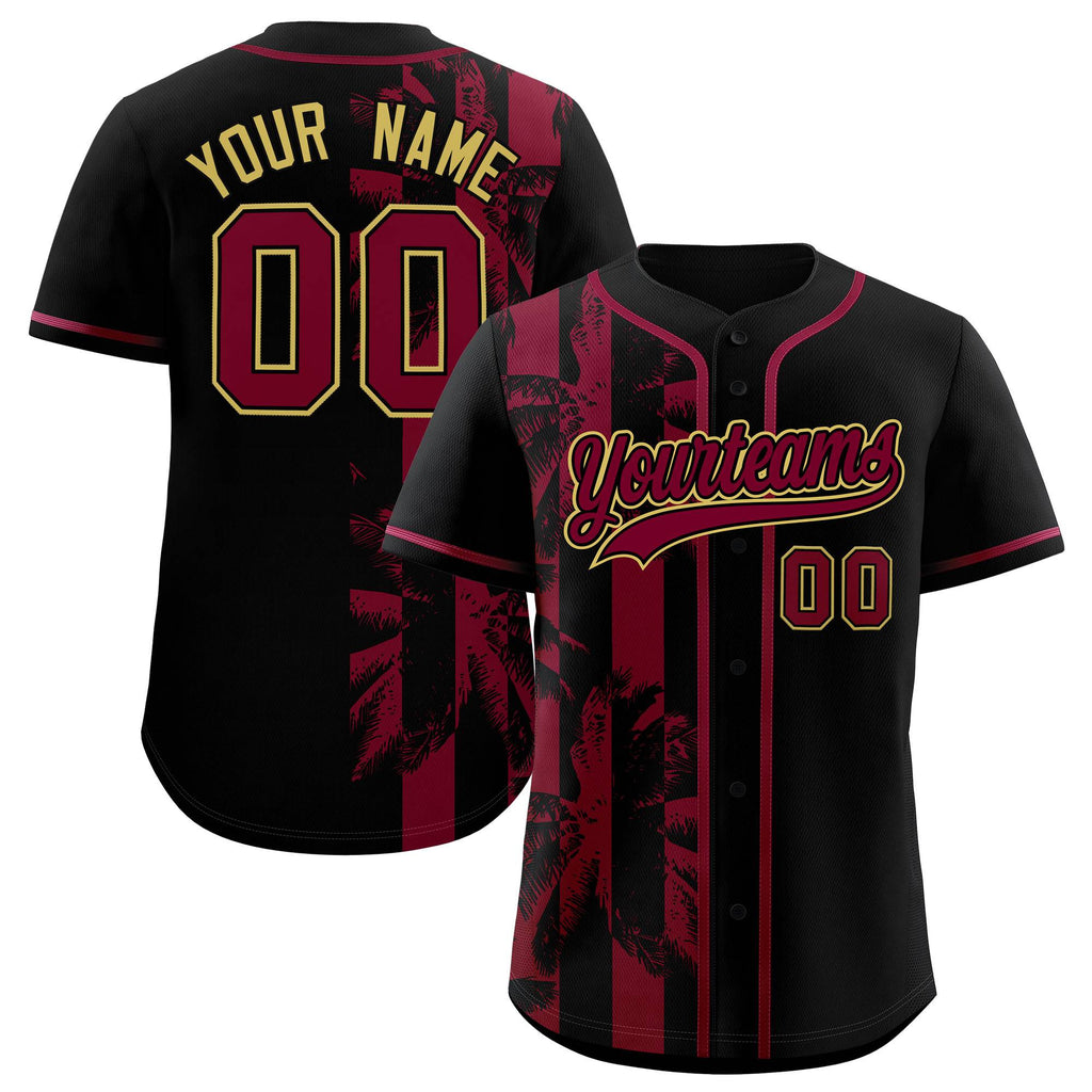 Custom Black Crimson Split Fashion Coconut Tree Design Authentic Baseball Jersey