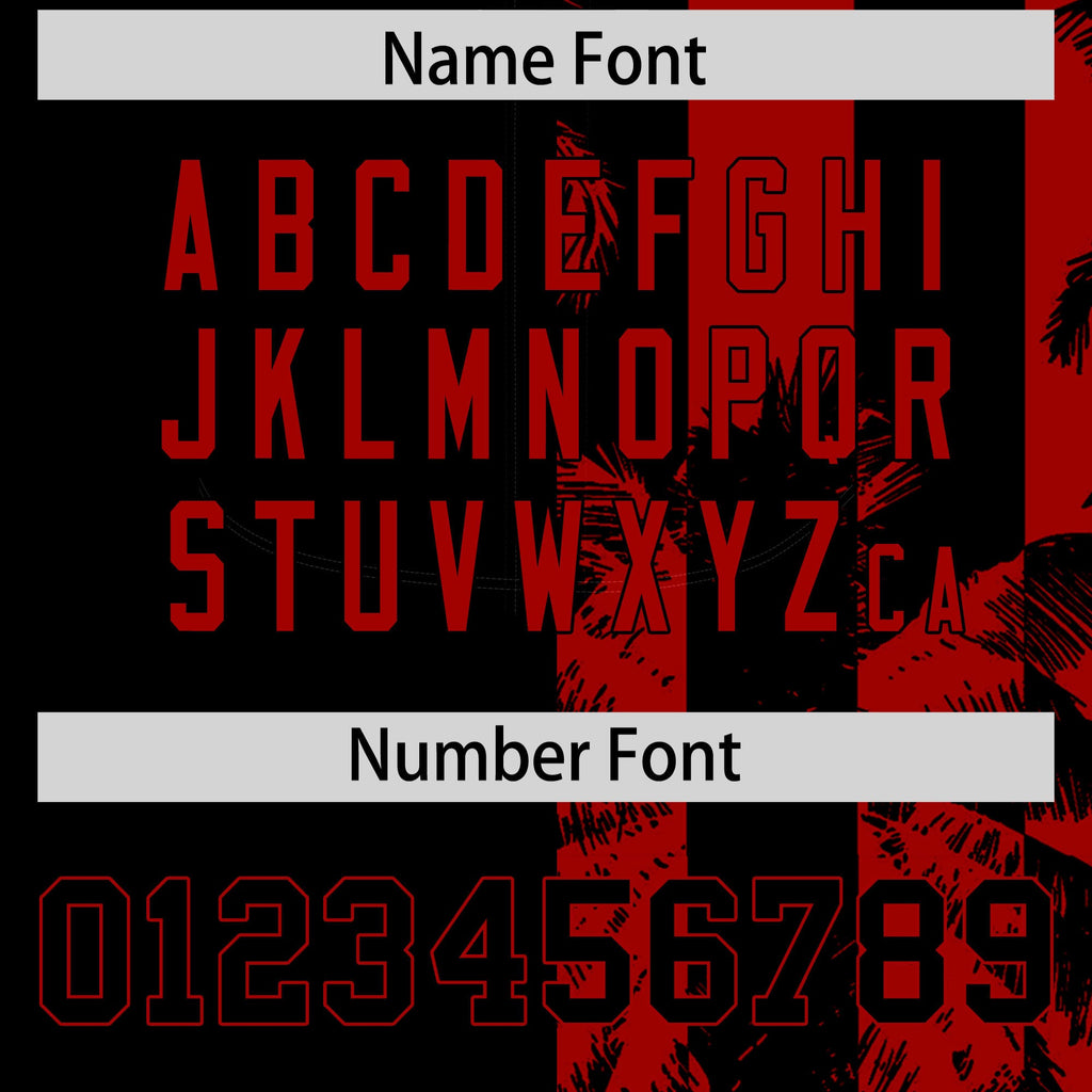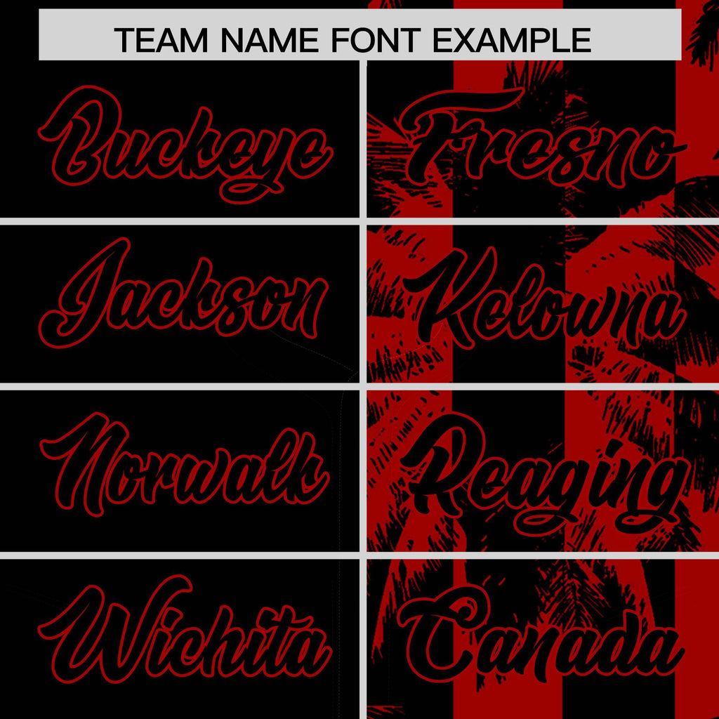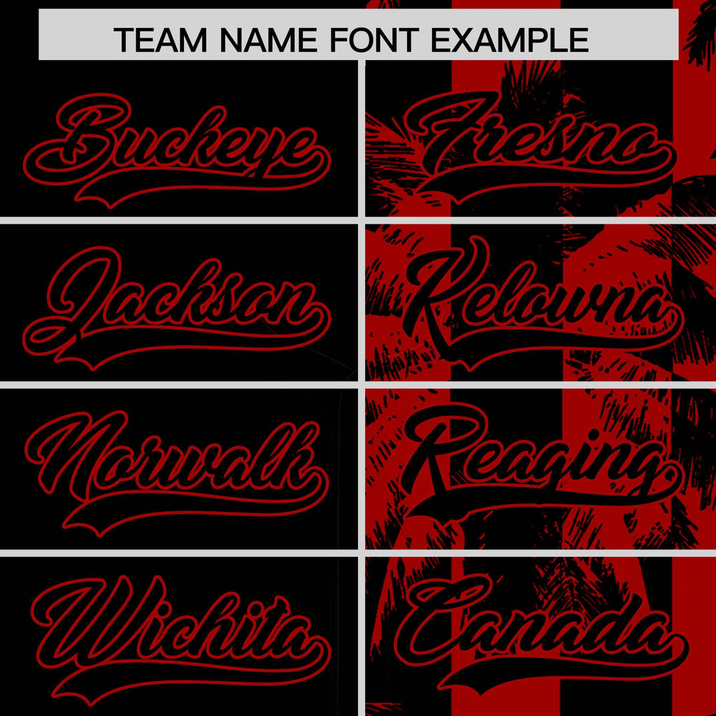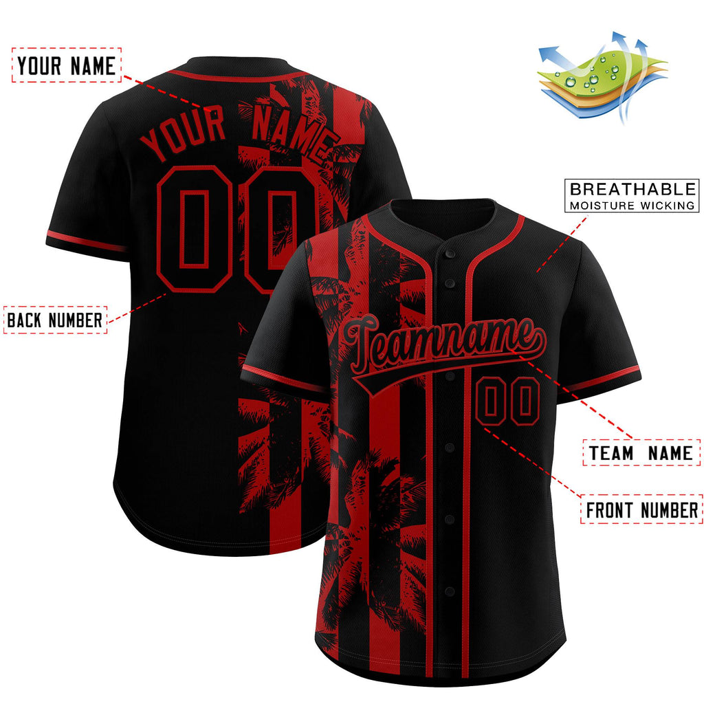 Custom Black Red Split Fashion Coconut Tree Design Authentic Baseball Jersey