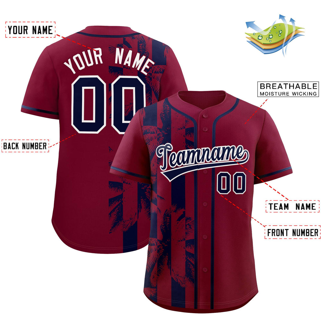 Custom Crimson Navy Split Fashion Coconut Tree Design Authentic Baseball Jersey