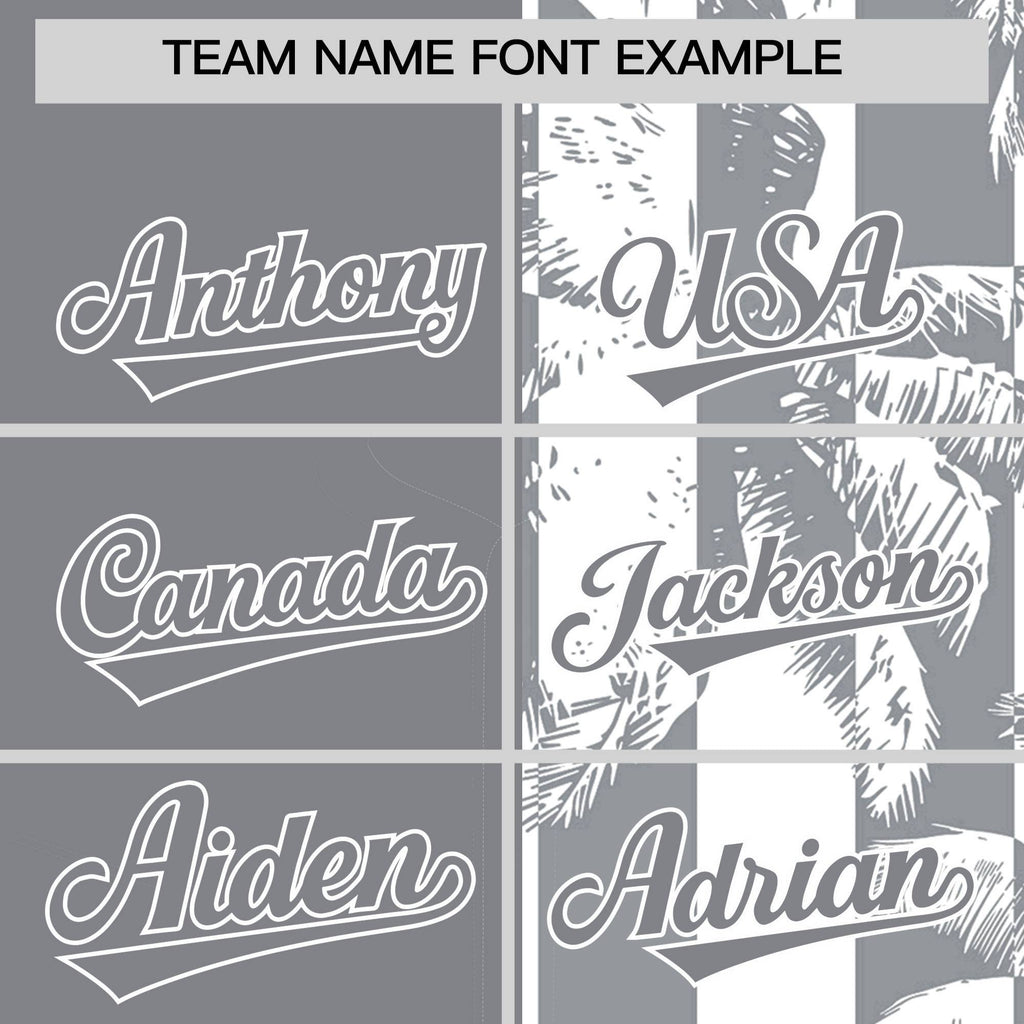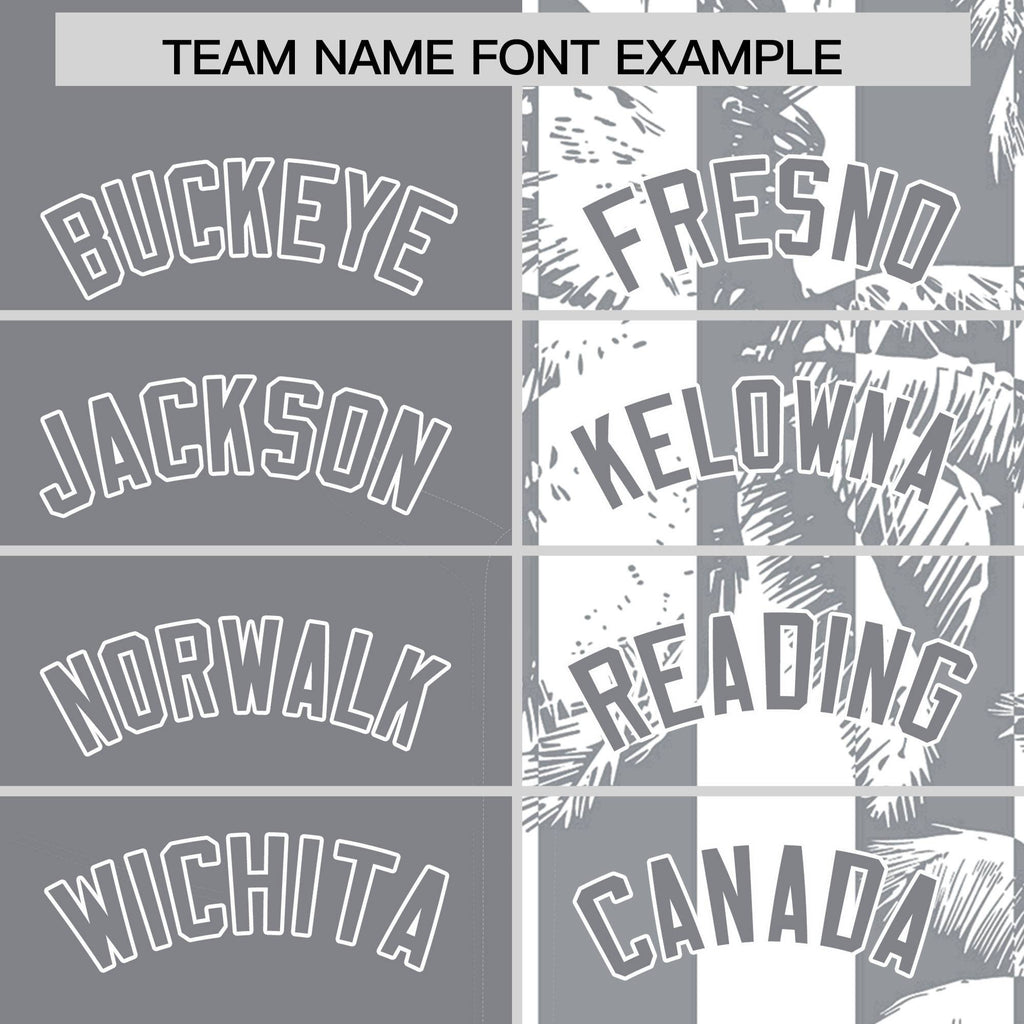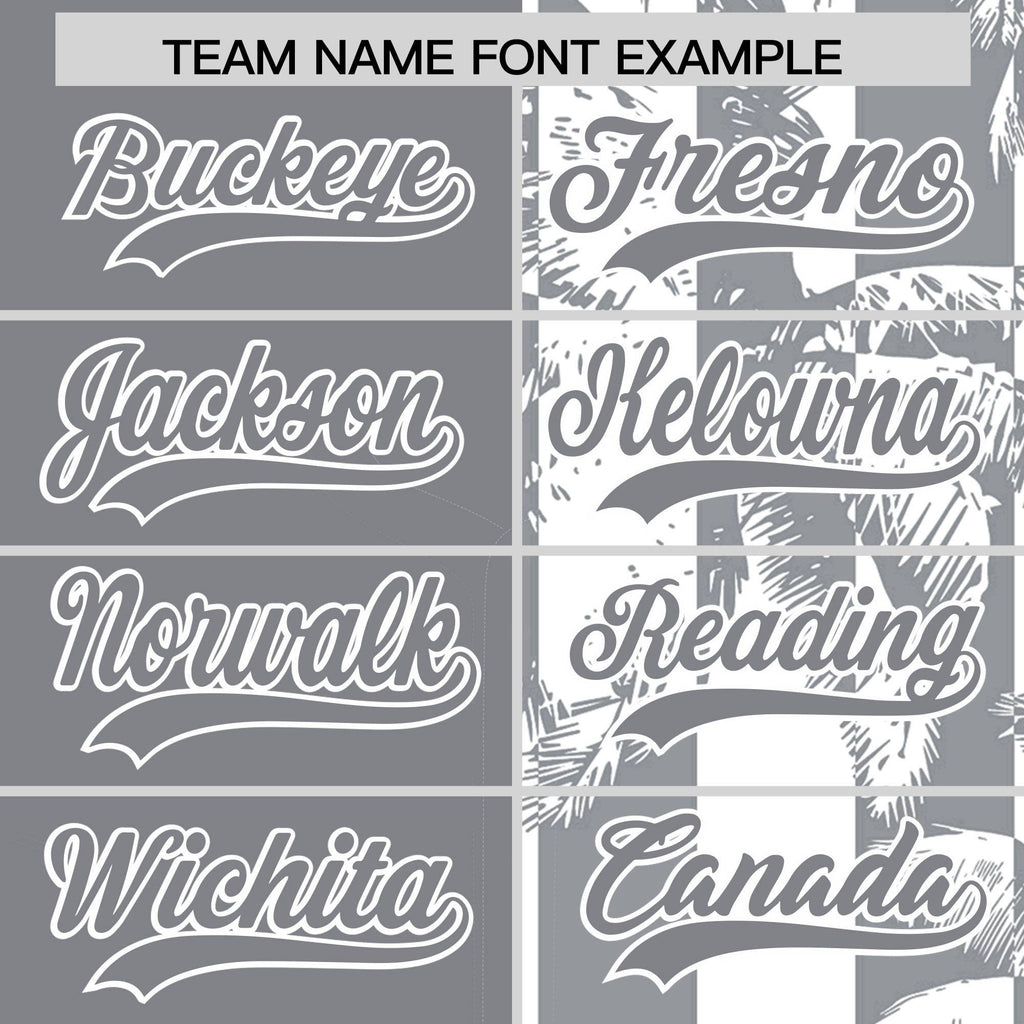 Custom Gray White Split Fashion Coconut Tree Design Authentic Baseball Jersey