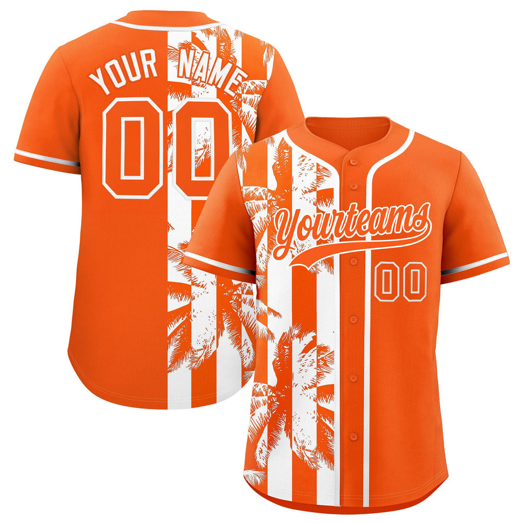 Custom Orange White Split Fashion Coconut Tree Design Authentic Baseball Jersey