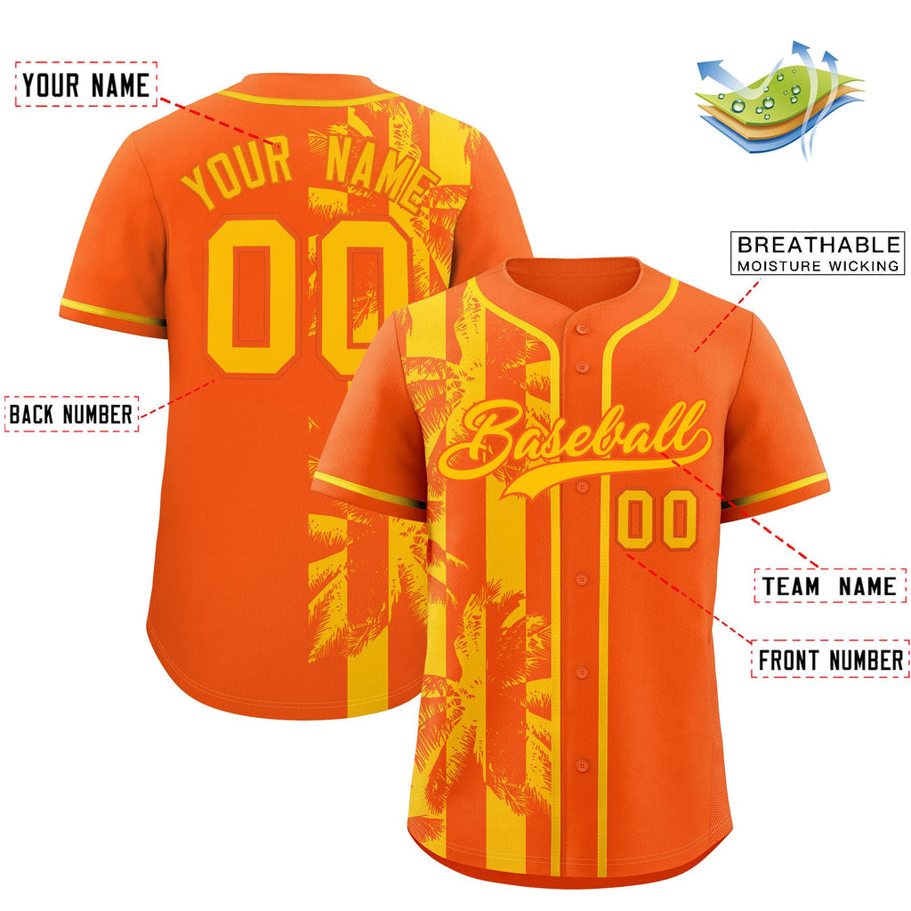 Custom Orange Yellow Split Fashion Coconut Tree Design Authentic Baseball Jersey