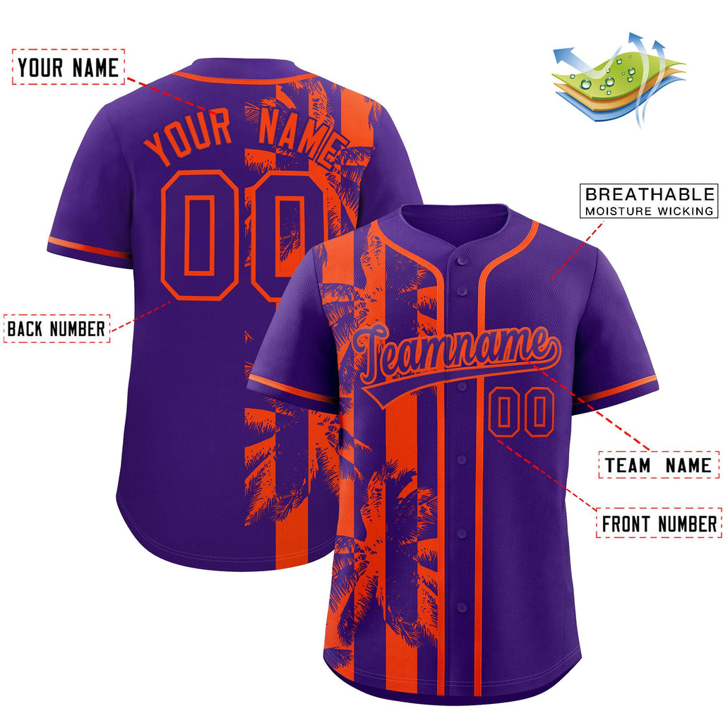 Custom Purple Orange Split Fashion Coconut Tree Design Authentic Baseball Jersey