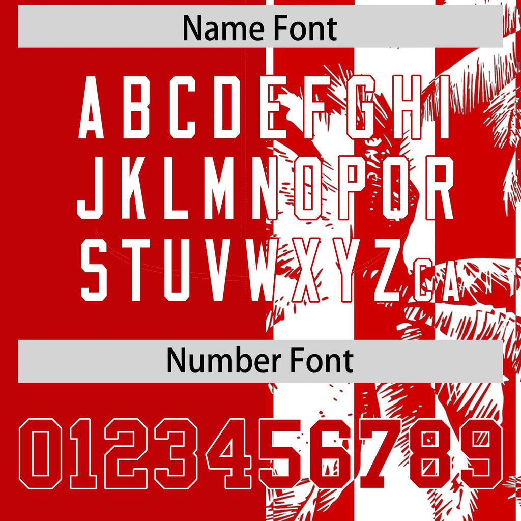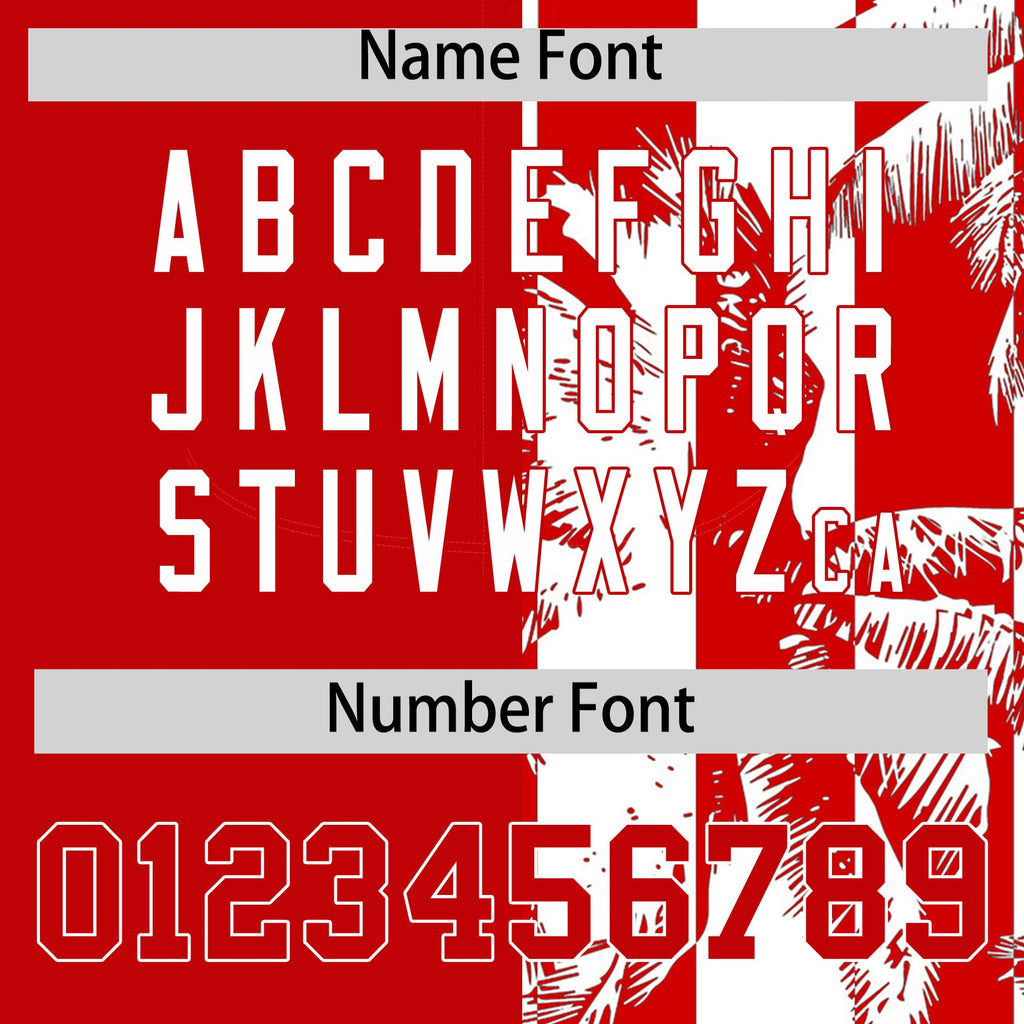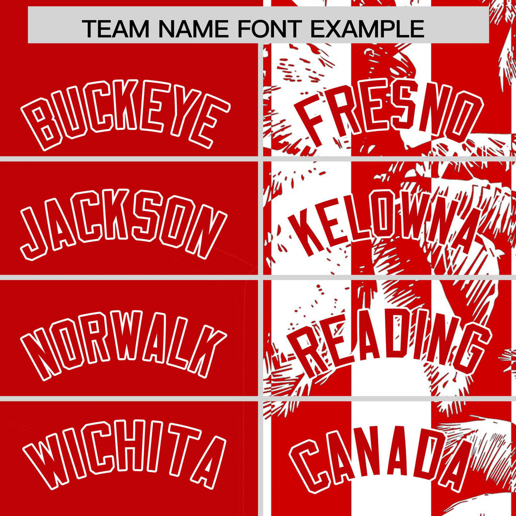 Custom Red White Split Fashion Coconut Tree Design Authentic Baseball Jersey