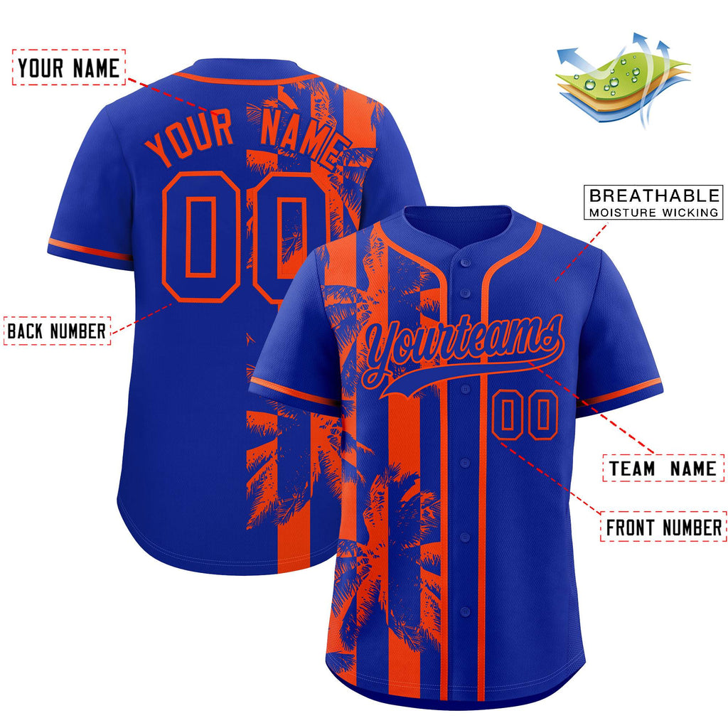 Custom Royal Orange Split Fashion Coconut Tree Design Authentic Baseball Jersey
