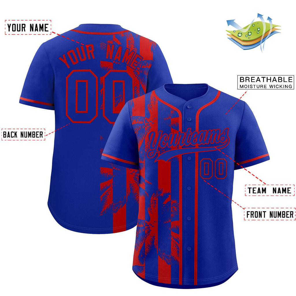 Custom Royal Red Split Fashion Coconut Tree Design Authentic Baseball Jersey