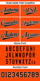 Customized information: Team Name:,Front Number,Your Name:,Back Number:.