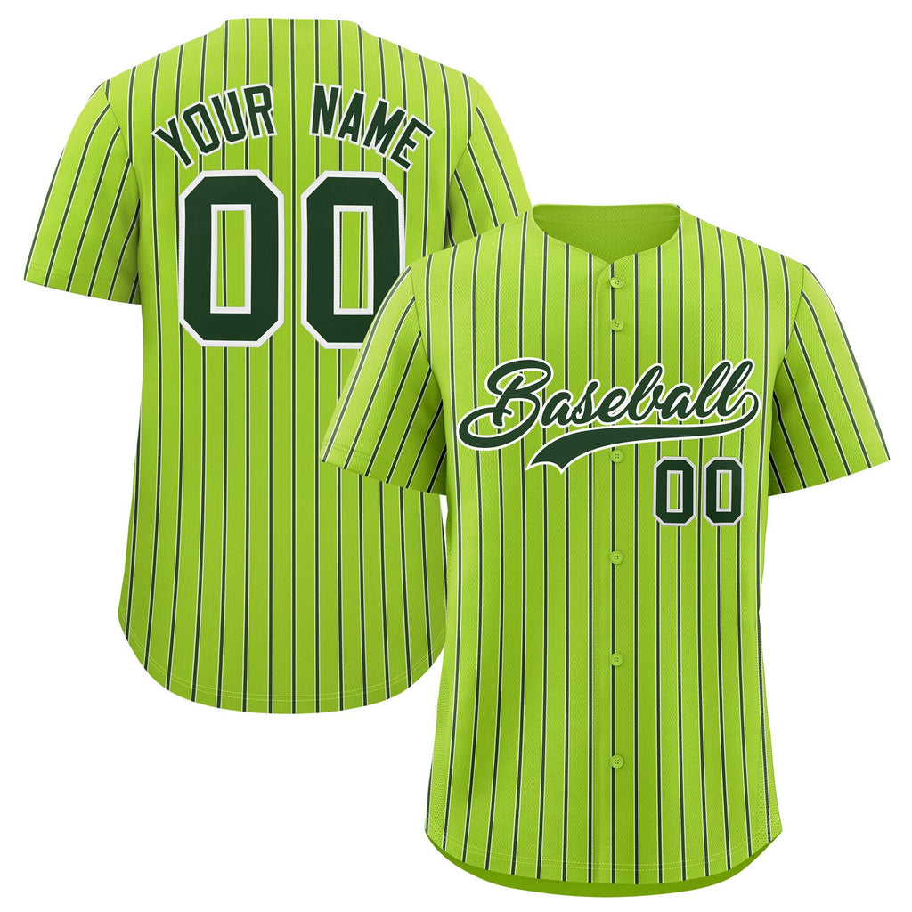 Custom Neon Green White Tricolor Stripe Fashion Authentic Baseball Jersey