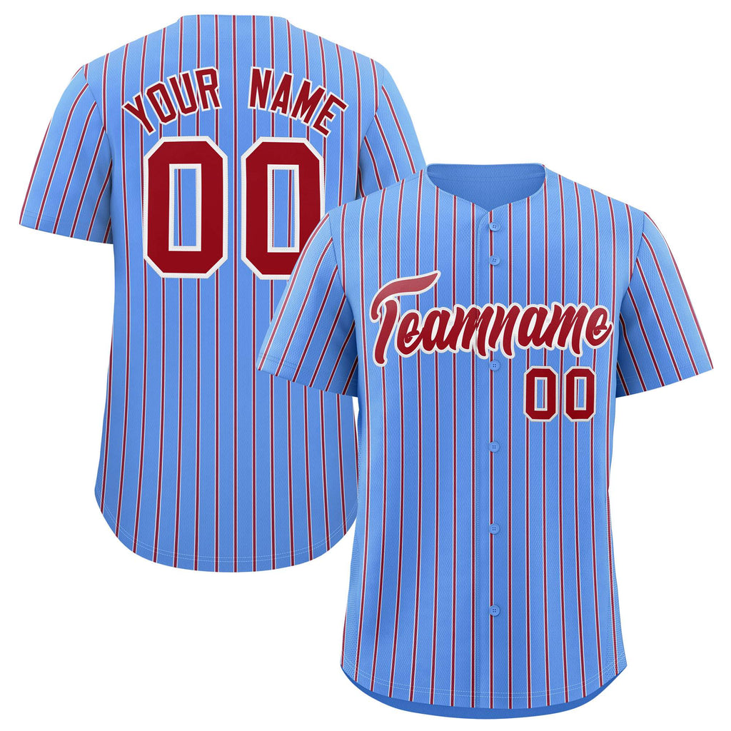 Custom Powder Blue White Tricolor Stripe Fashion Authentic Baseball Jersey
