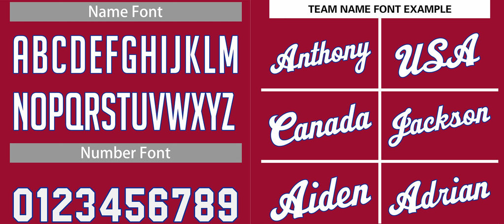 Customized information: Team Name:,Front Number,Your Name:,Back Number:.