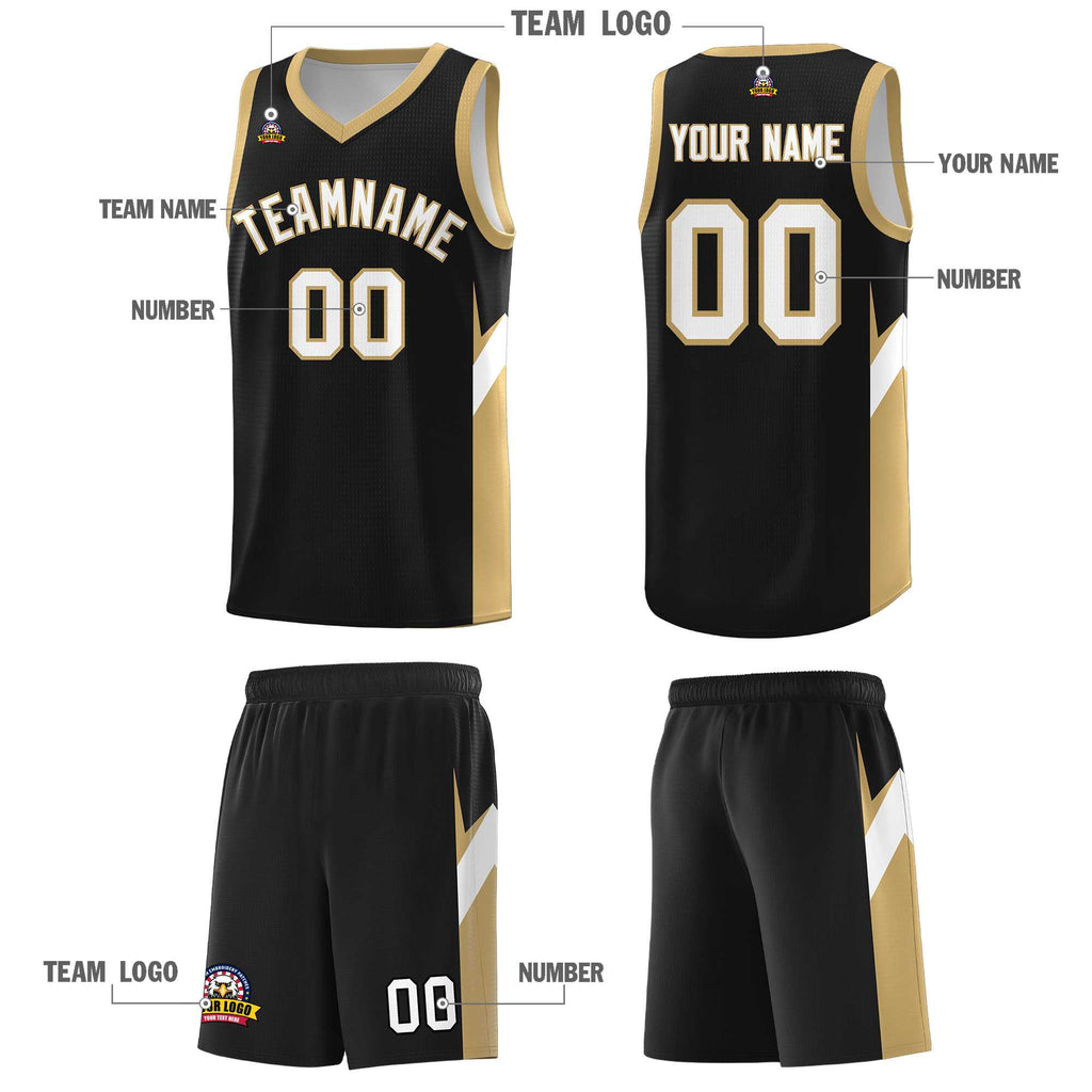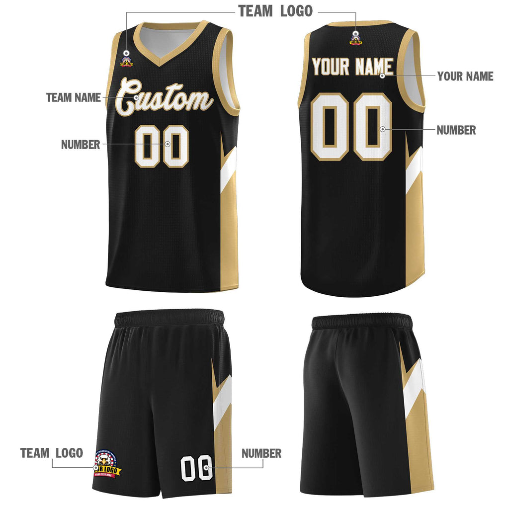 Custom Black Old Gold Side Design Sets Sports Uniform Basketball Jersey