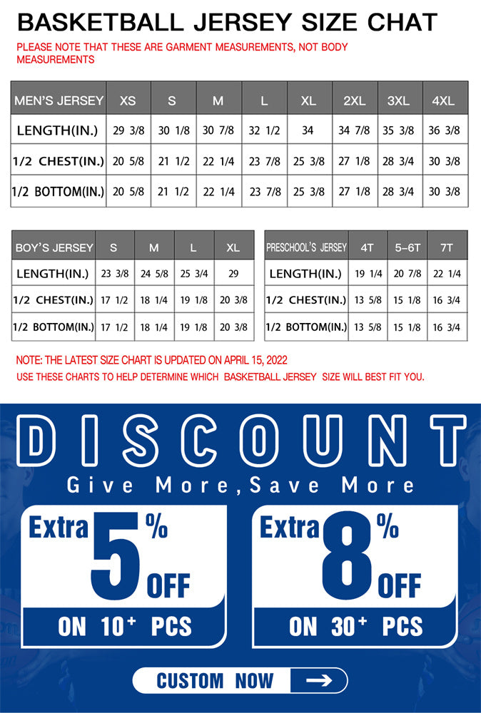 3. Fit: Jerseys have an athletic cut. For a looser fit, we recommend ordering one size larger than you normally wear