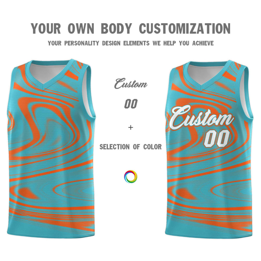 Custom Aqua Orange Graffiti Pattern Fluids Style Sports Uniform Basketball Jersey Sets
