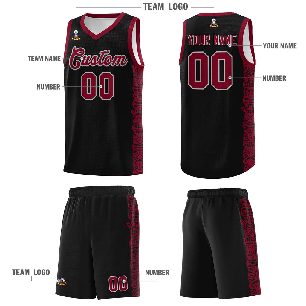 Custom Black Crimson Personalized Indians Pattern Sets Sports Uniform Basketball Jersey
