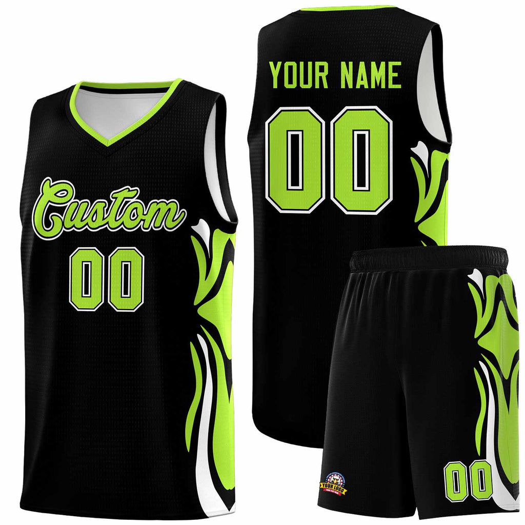 Custom Black Light Green-White Graffiti Pattern Side Curve Pattern Sports Uniform Basketball Jersey Sets