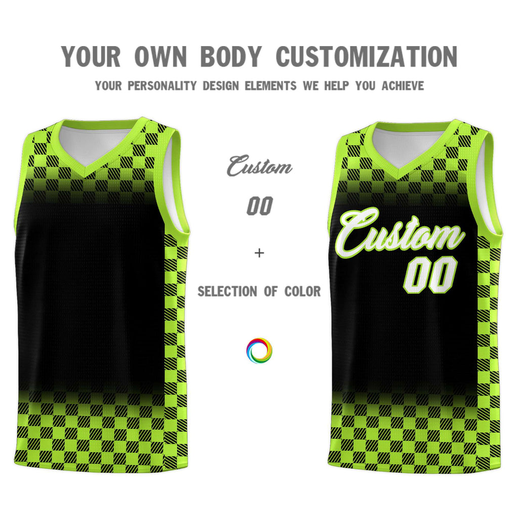 Custom Black Neon Green Classic Plaid Pattern Sports Uniform Basketball Jersey