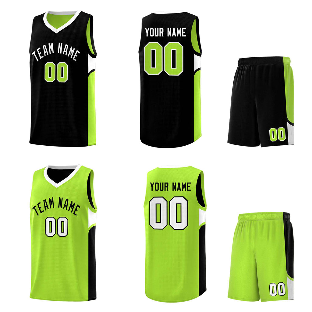 Custom Black Neon Green Side U-shaped Patttern Double Side Sports Uniform Basketball Jersey