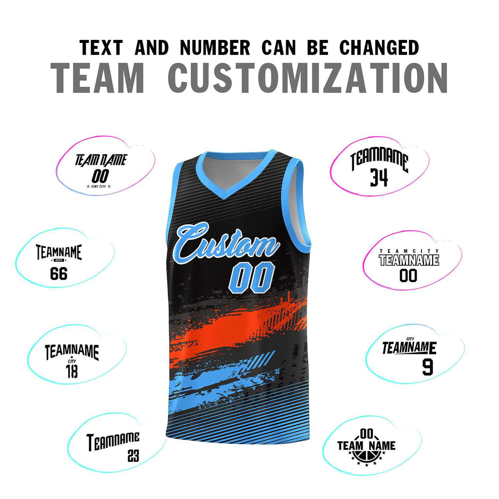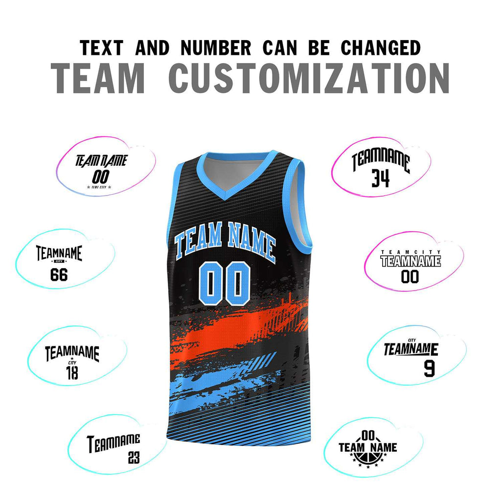 Custom Black Orange and Powder Blue Graffiti Pattern Sports Uniform Basketball Jersey