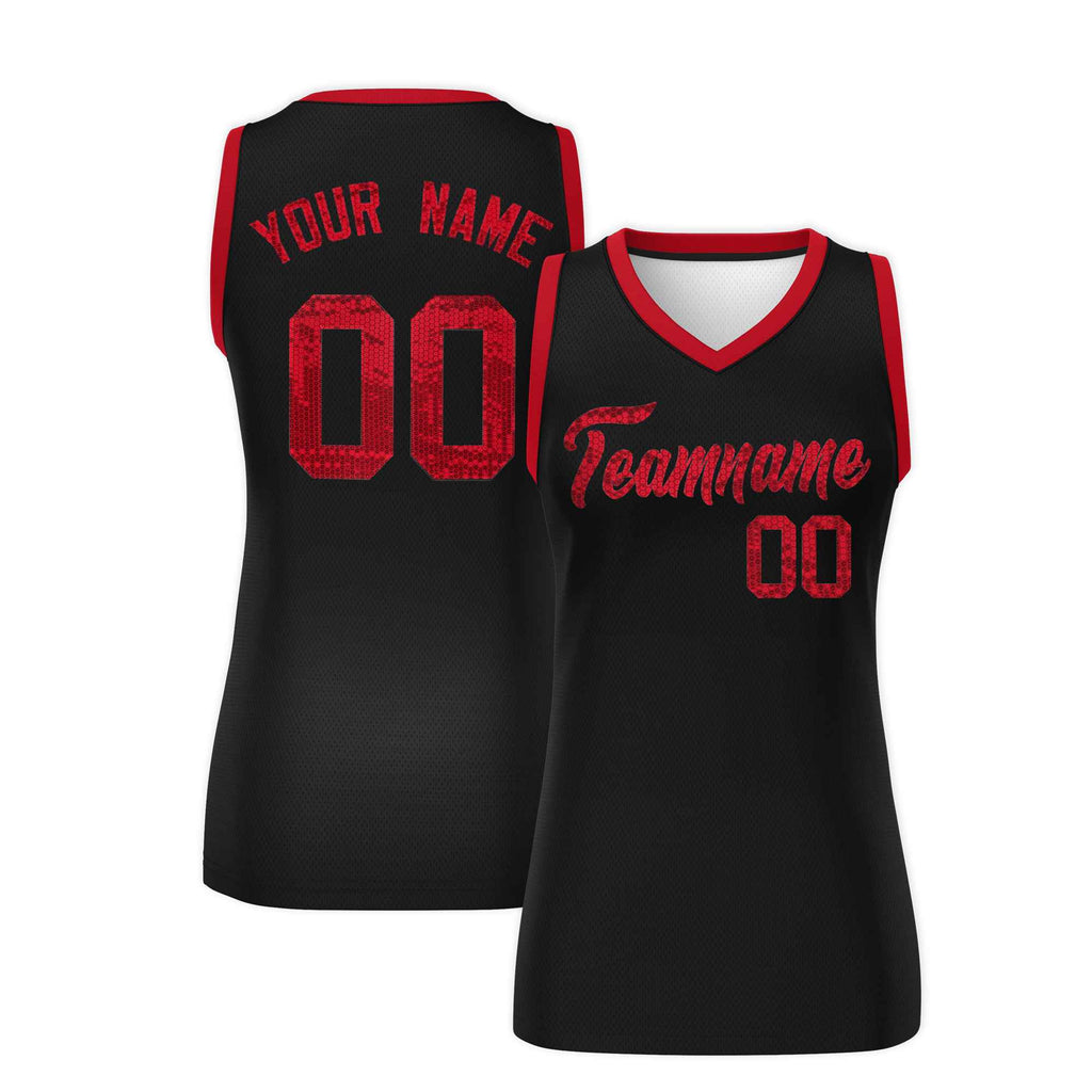 Custom Black Red Women Basketball Jersey Sequined Dress