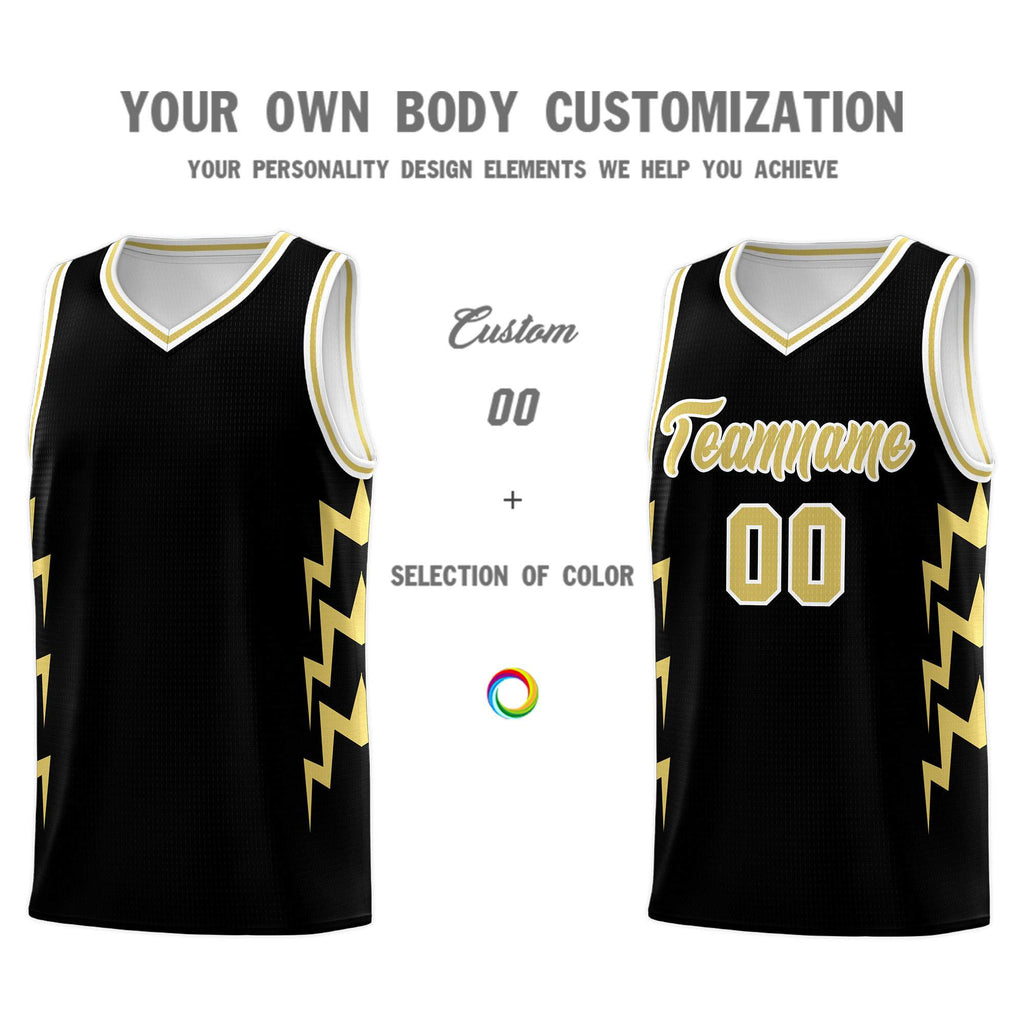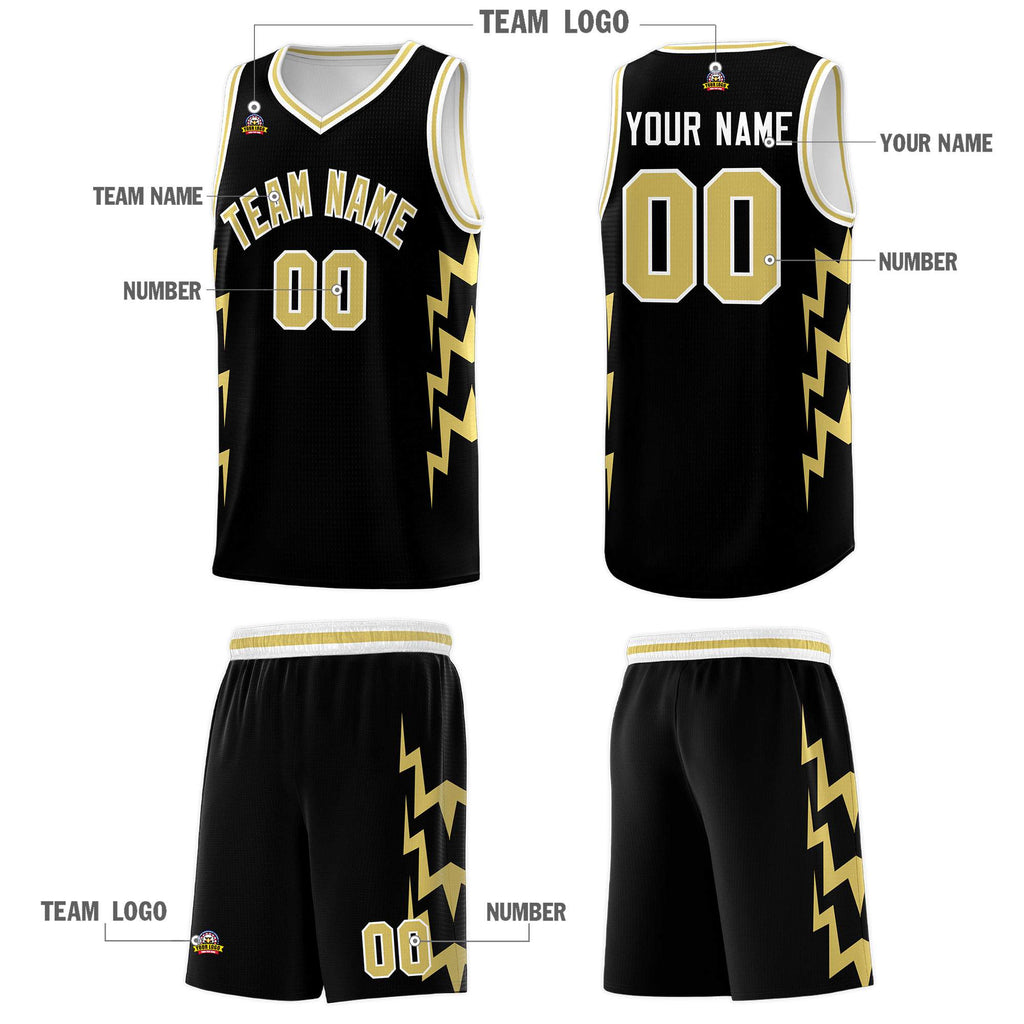 Custom Black Side Lightning Pattern Sports Uniform Basketball Jersey