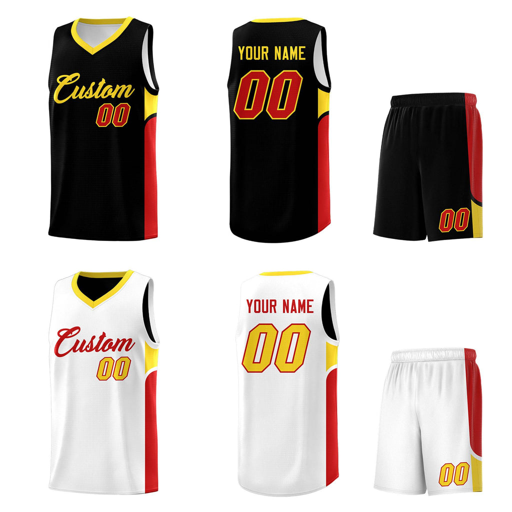 Custom Black White Side U-shaped Patttern Double Side Sports Uniform Basketball Jersey