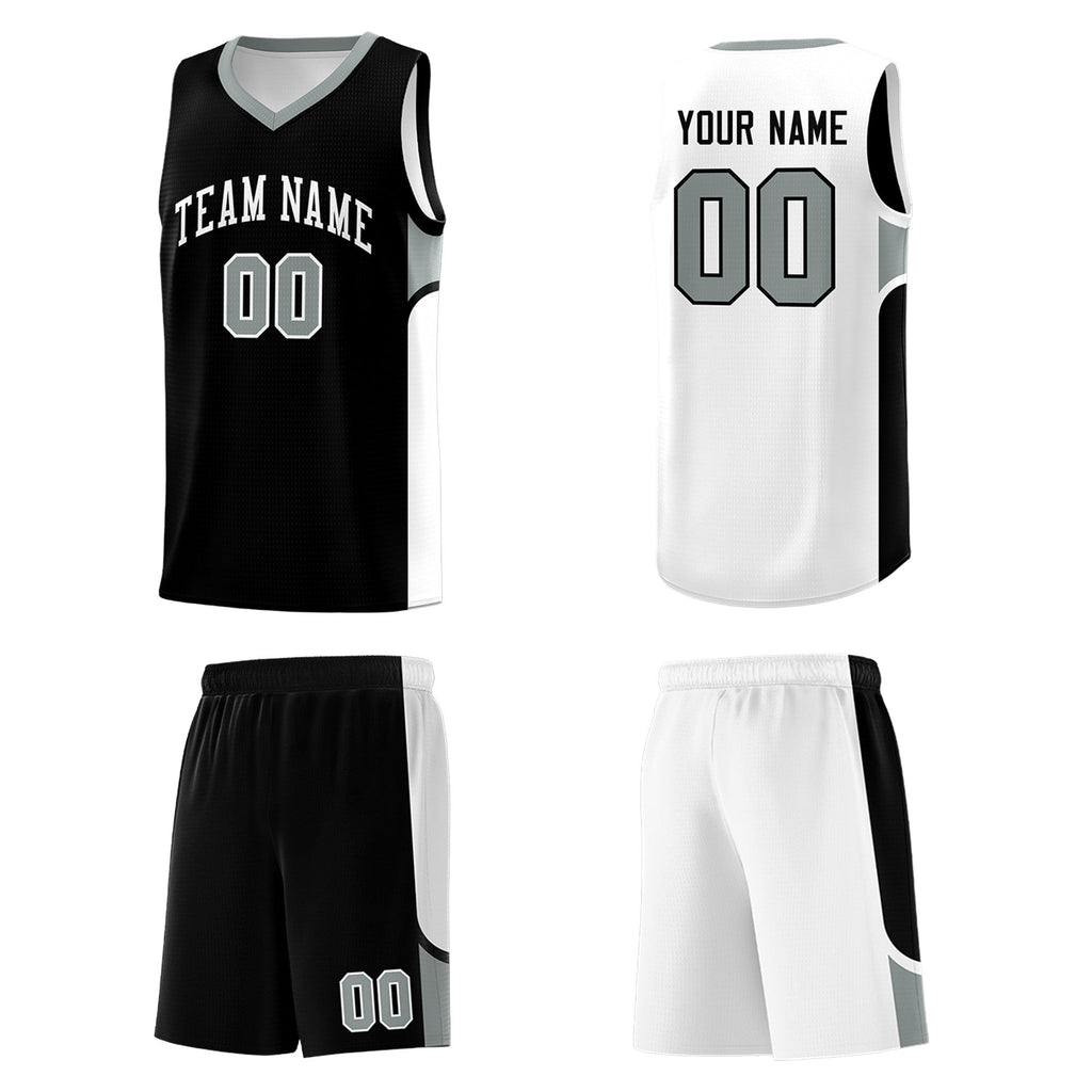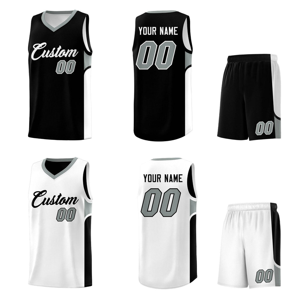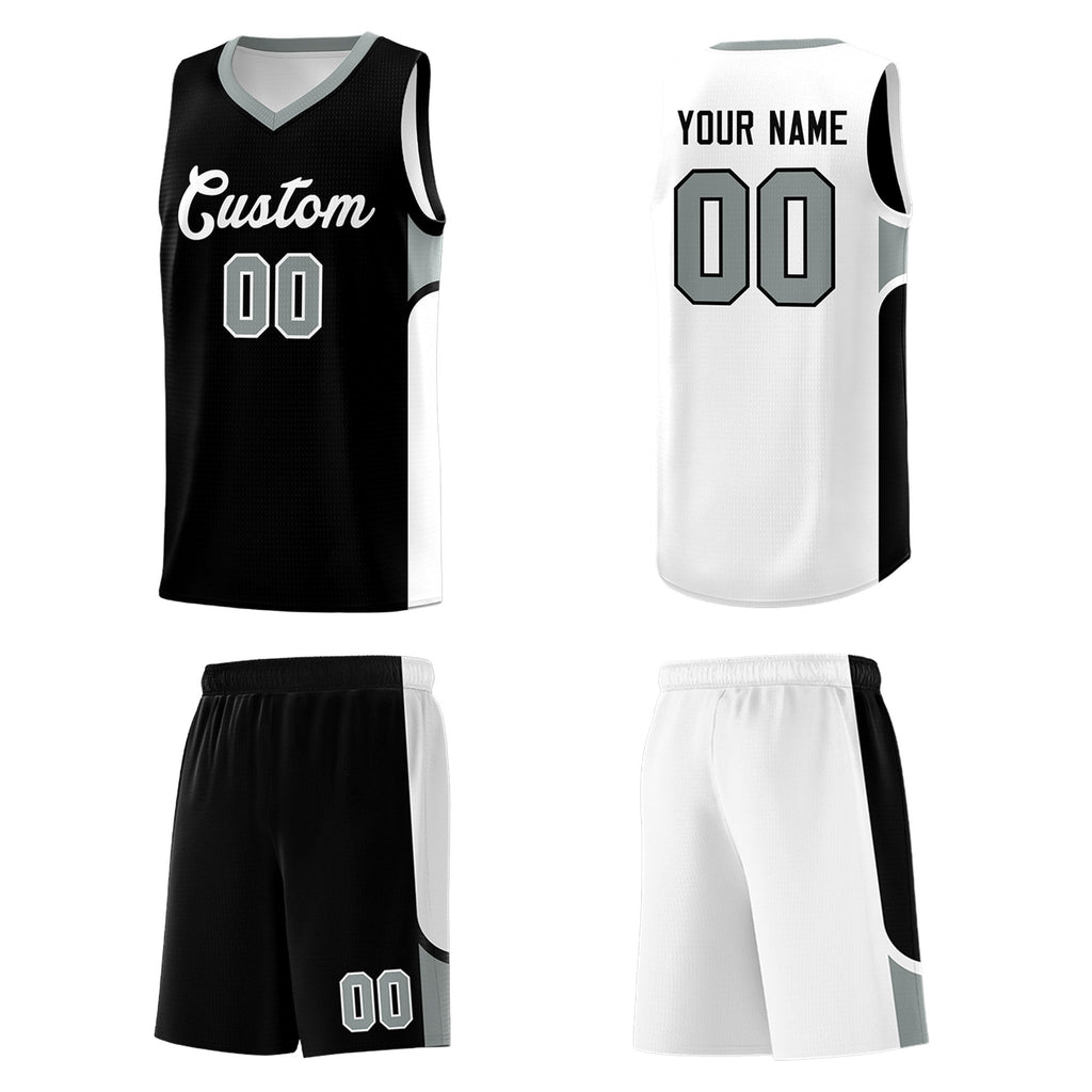 Custom Black White Side U-shaped Patttern Double Side Sports Uniform Basketball Jersey