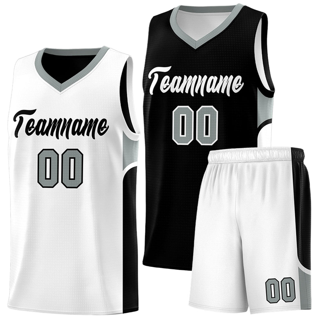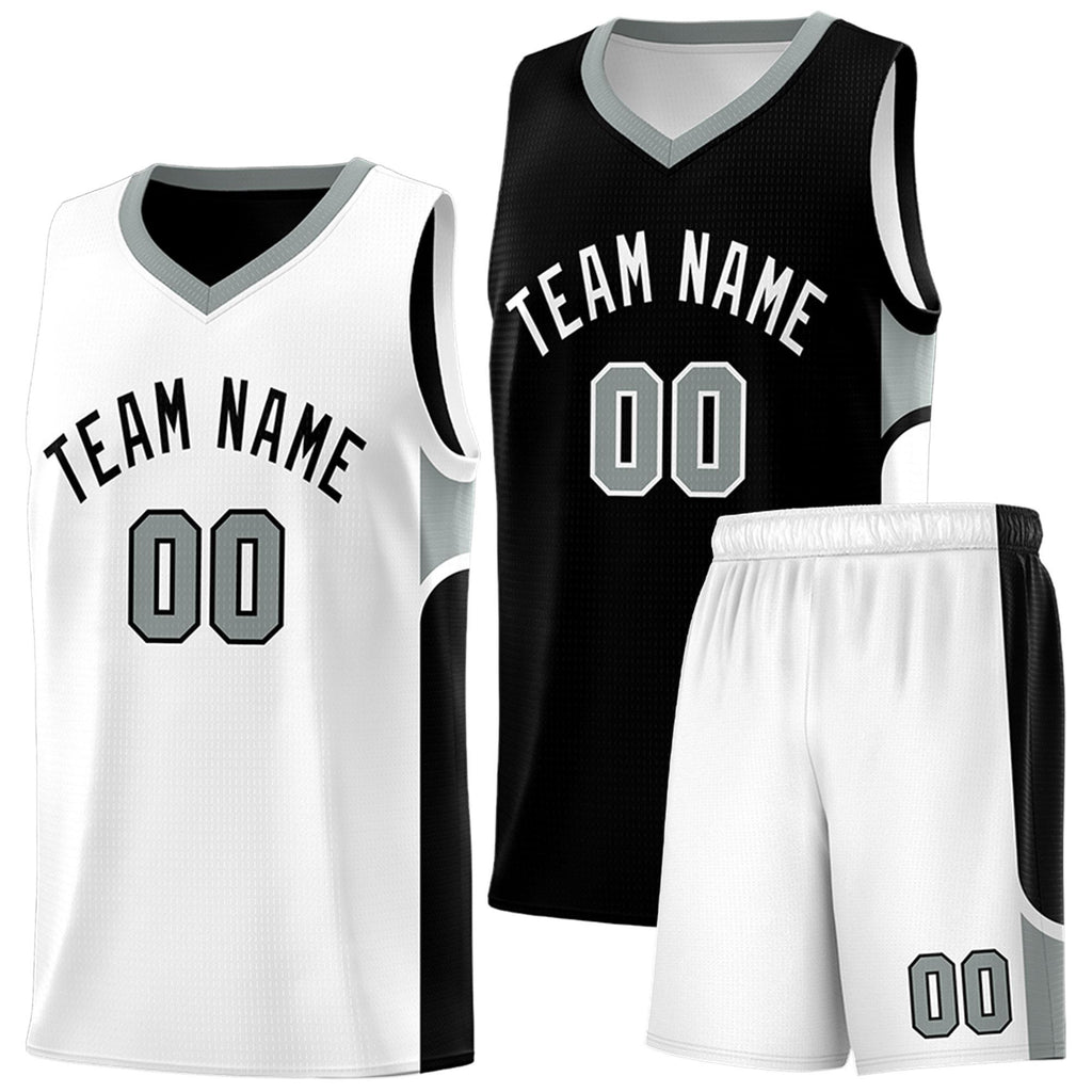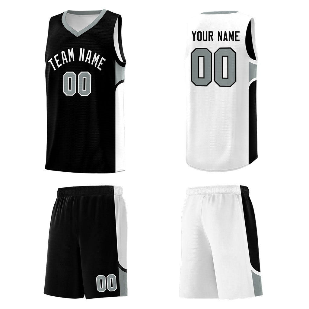 Custom Black White Side U-shaped Patttern Double Side Sports Uniform Basketball Jersey