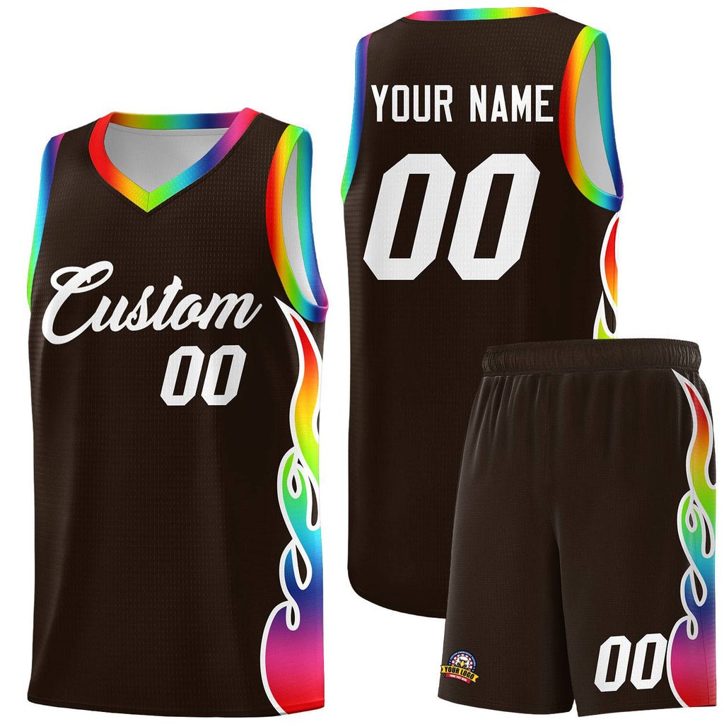Custom Brown Side Flame Pattern Fashion Sports Uniform Basketball Jersey