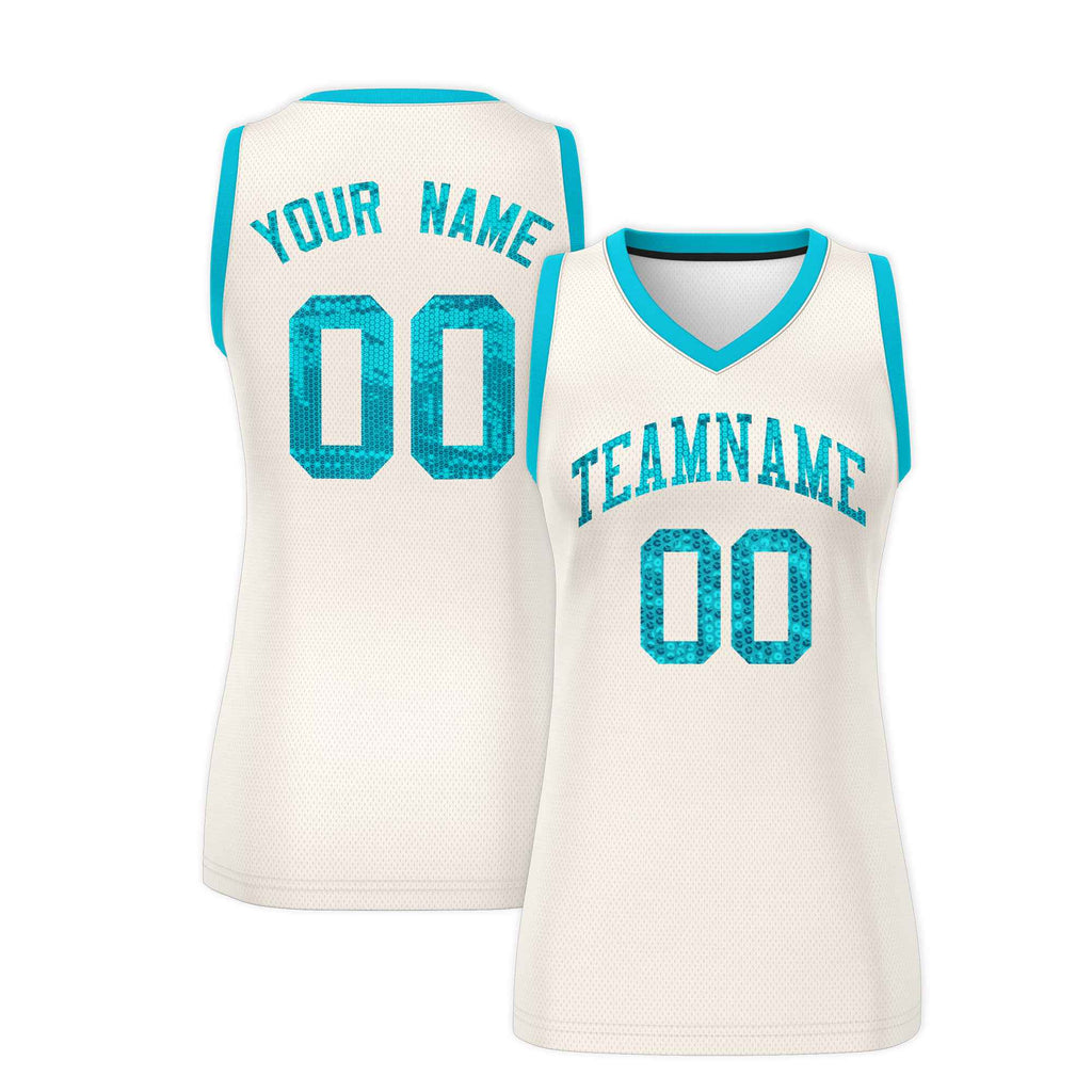 Custom Cream Sky Blue Women Basketball Jersey Sequined Dress